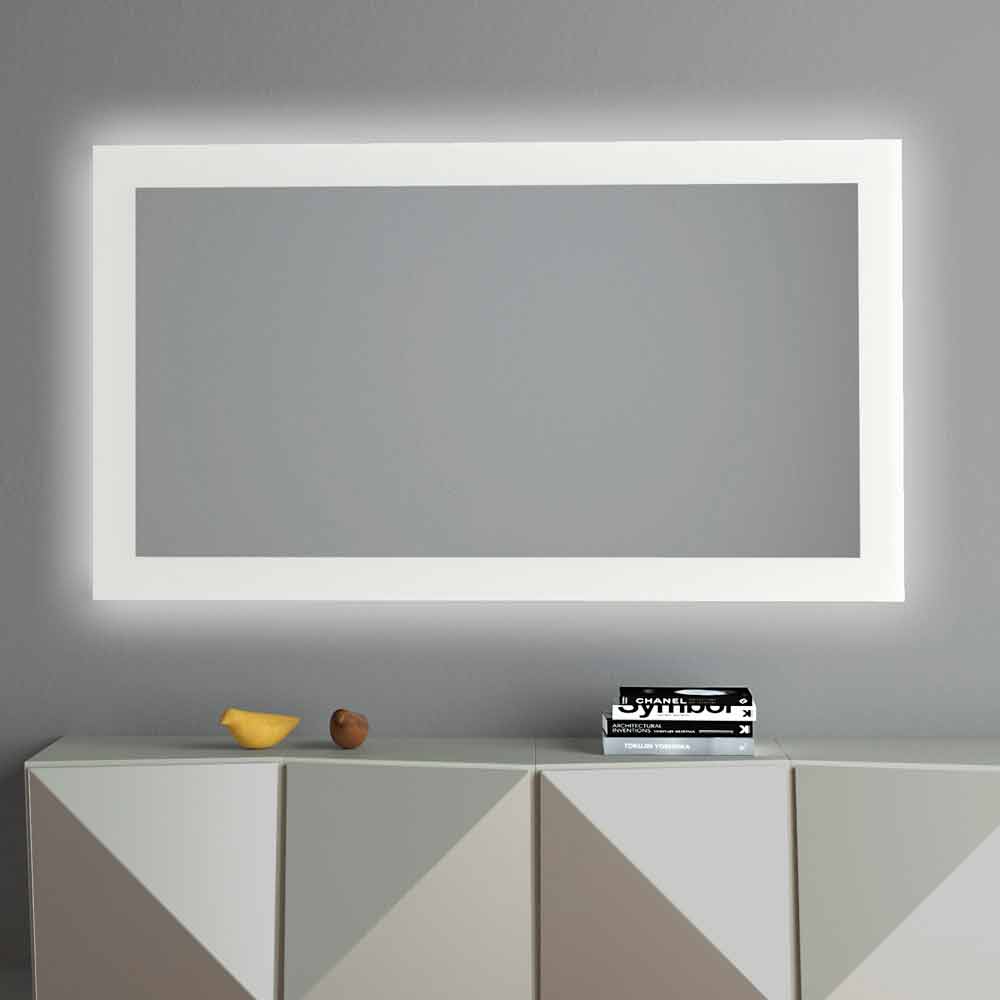 Espejo de pared rectangular retroiluminado con marco pulido con chorro de arena Made in Italy.