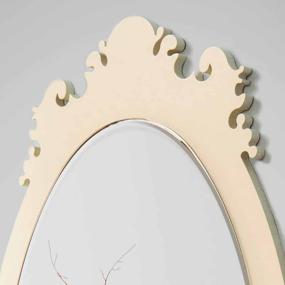 Espejo de madera lacada perfecto para ambientes de estilo clásico, dado su diseño retro, tanto en la sala de estar como en el dormitorio.
