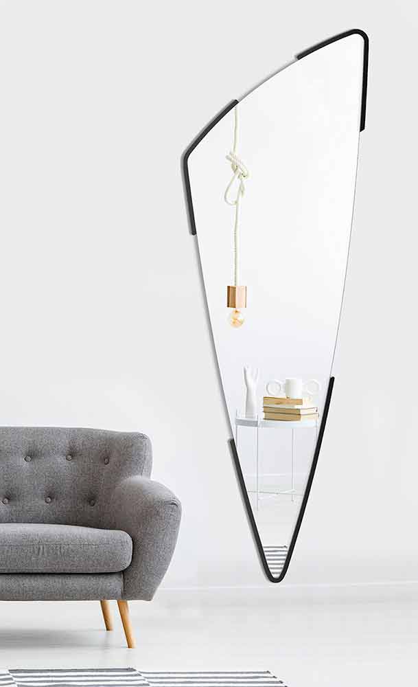 Espejo decorativo de pared moderno largo con marco minimalista en diferentes colores, diseño en forma hecho en Italia.