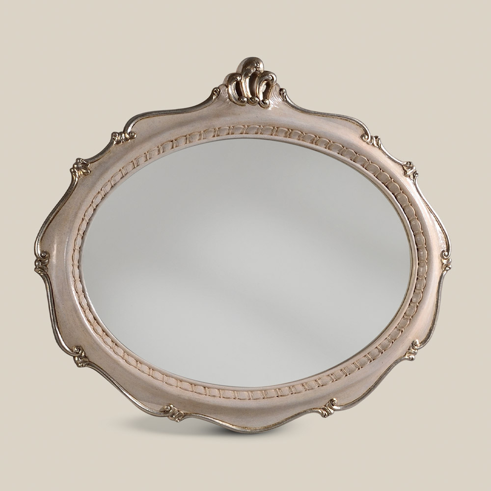 Espejo ovalado estilo clásico en madera plata envejecida Fabricado en Italia.