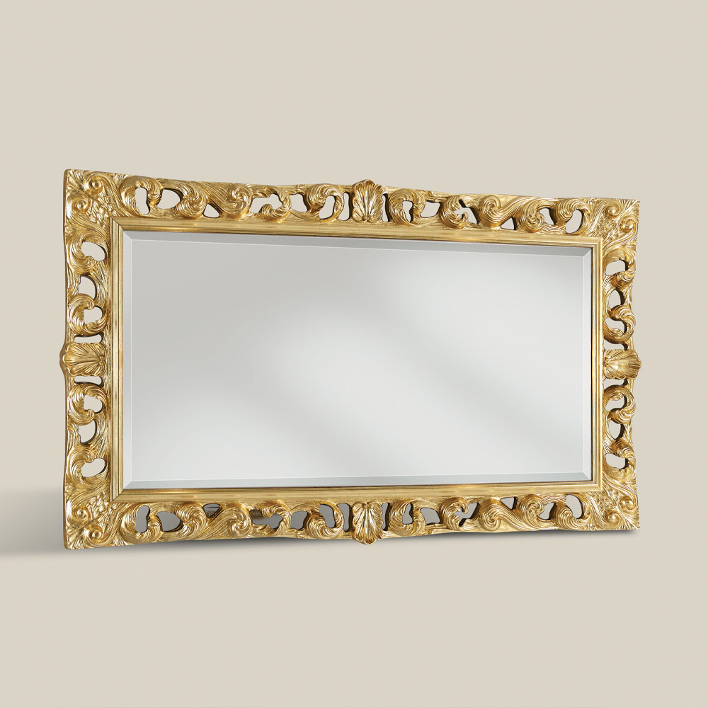 Espejo rectangular en madera clásica pan de oro Made in Italy.