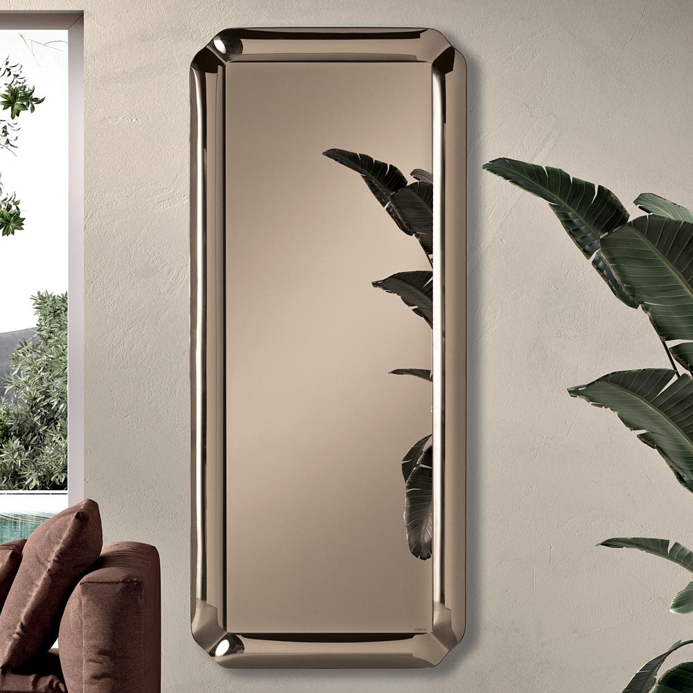 Un elegante espejo de pared de diseño, fabricado en Italia , ideal para realzar espacios como la entrada , el salón o el dormitorio . Su diseño contemporáneo se caracteriza por líneas depuradas y detalles refinados que convierten este accesorio en un elemento decorativo capaz de embellecer la pared con discreción y elegancia.