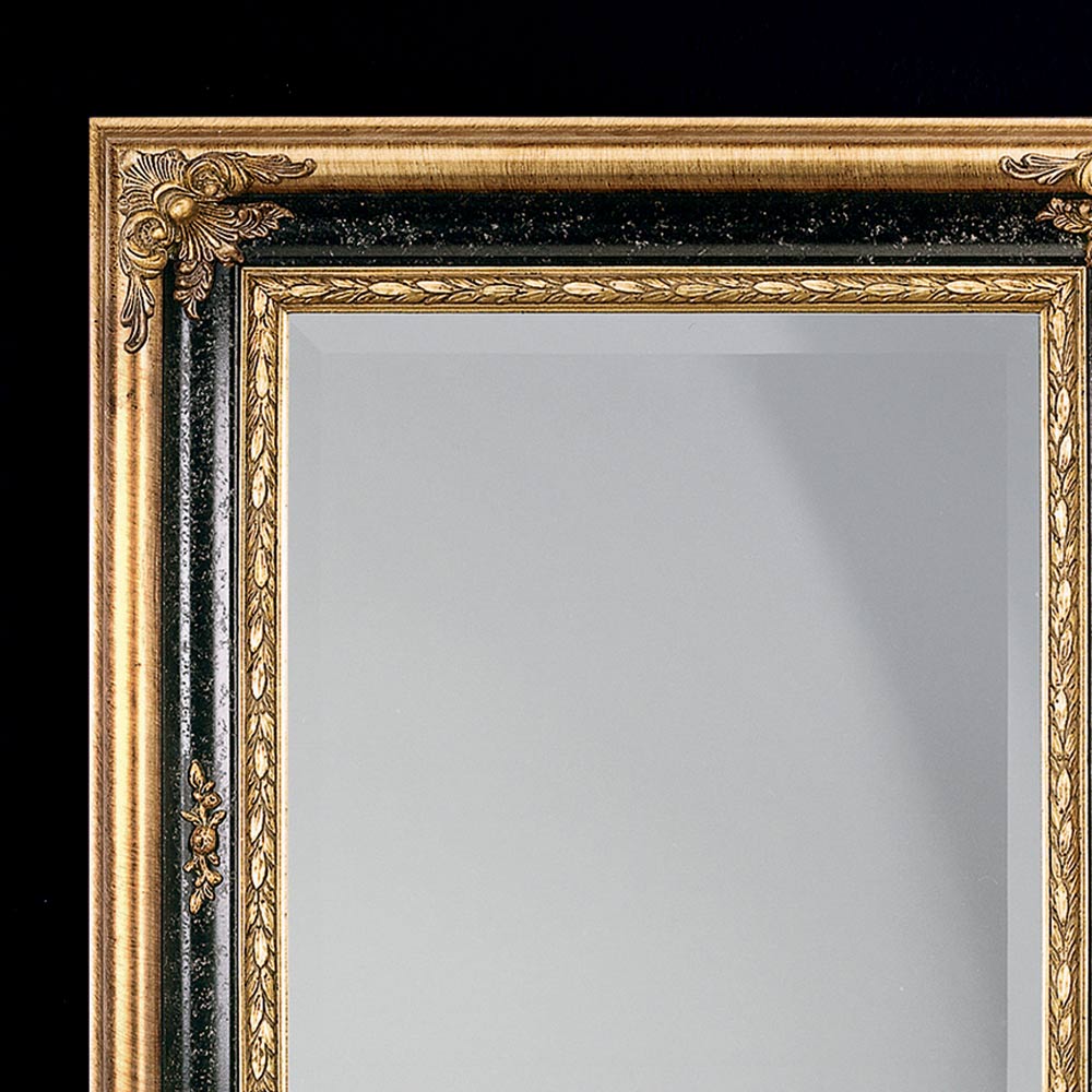 Espejo rectangular en madera de pan de oro y negro Made in Italy.