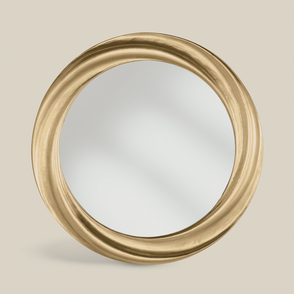 Espejo redondo con marco de madera decorado con pan de oro . Gracias a su estilo clásico , este espejo es ideal para dar un toque elegante y lujoso a cualquier estancia.