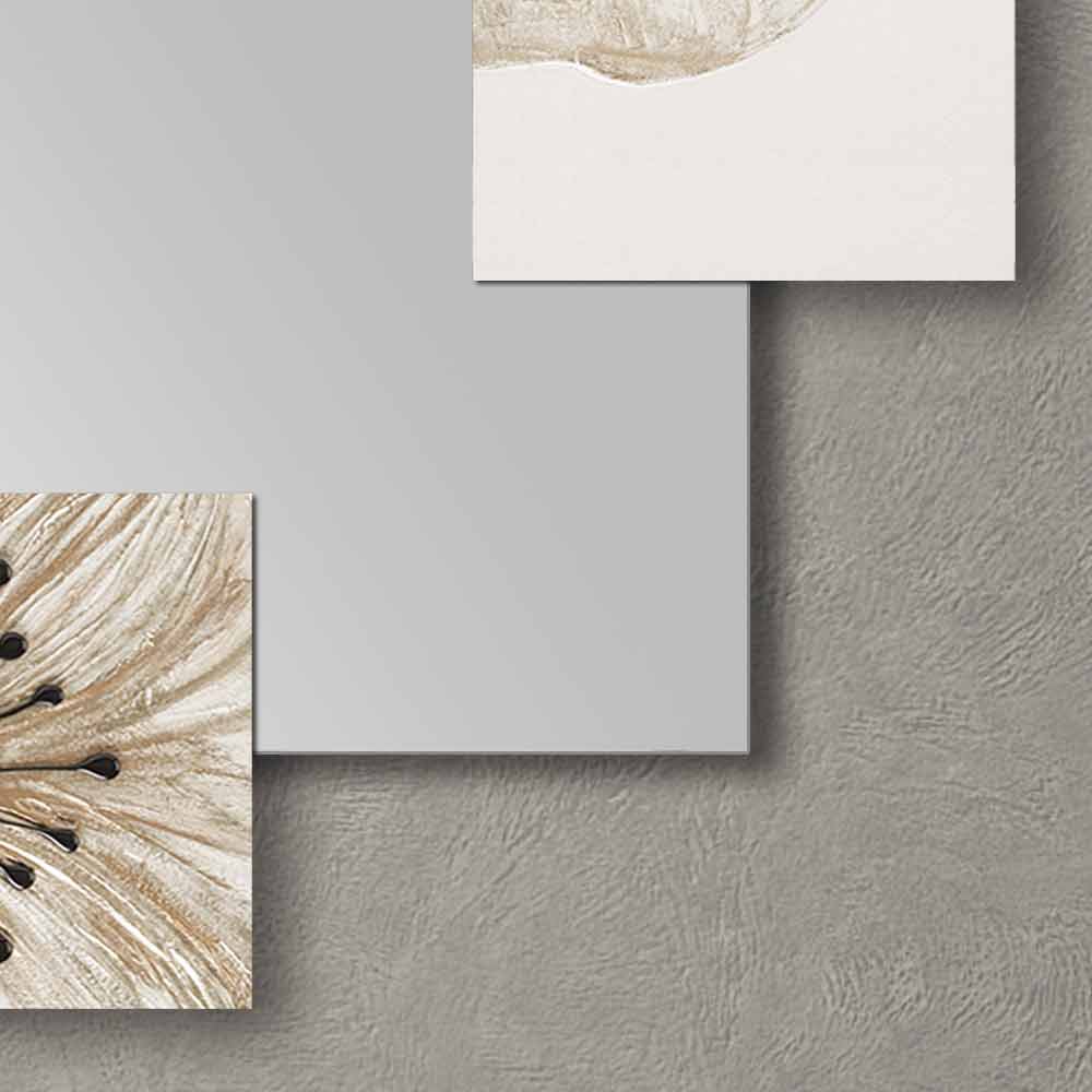 Estructura doble decorada a mano, con detalles de resina sobre matérico en relieve, espejo repujado, colocación horizontal / vertical, retoque extra lúcido.