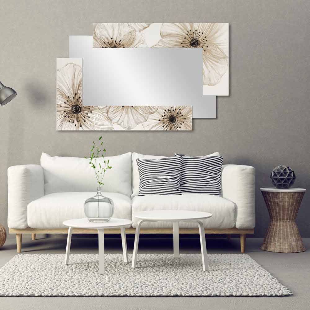 Composición Floral decorada a mano, detalles de resina sobre matérico, estructura separada con espejo repujado, colocación horizontal/vertical, retoque extra lúcido.