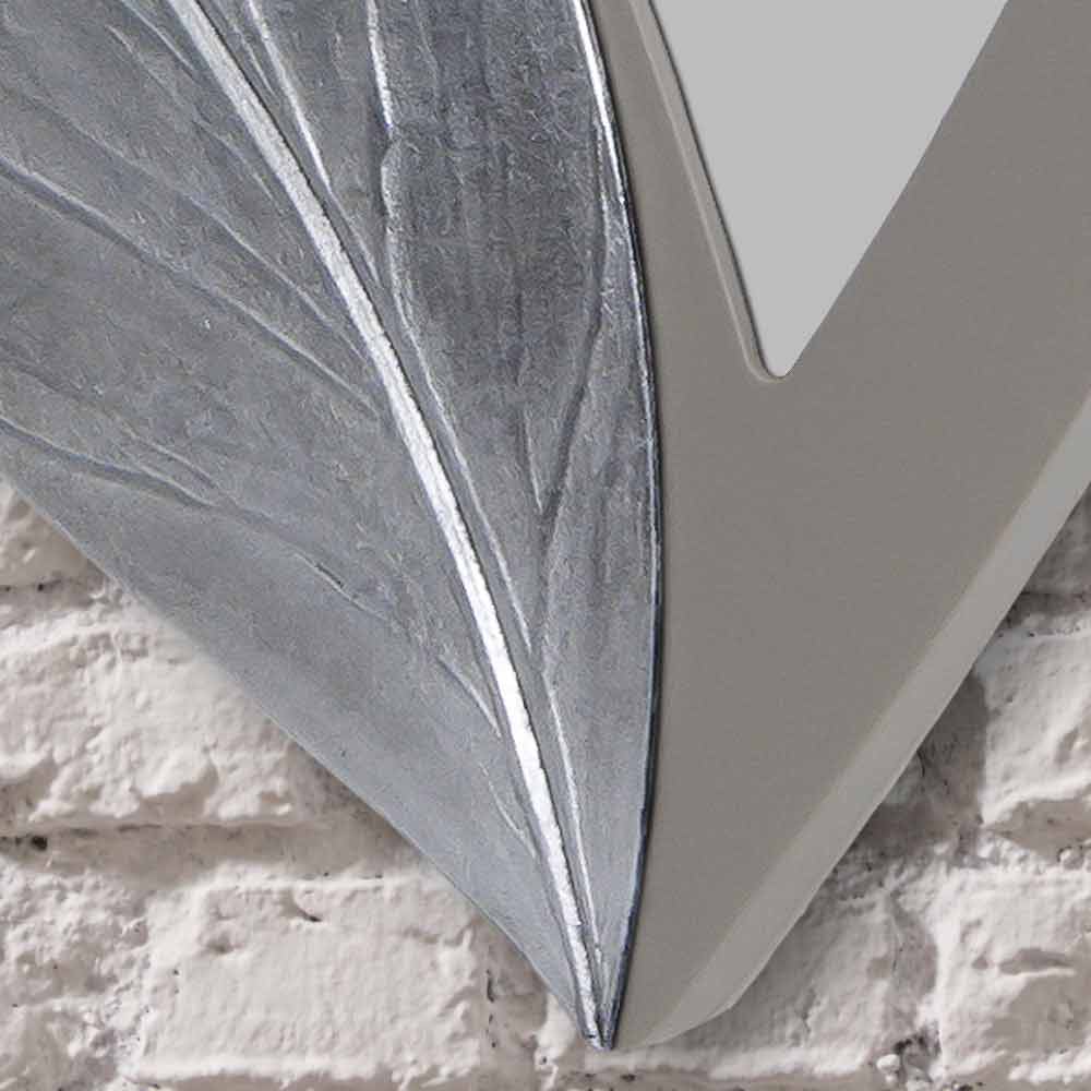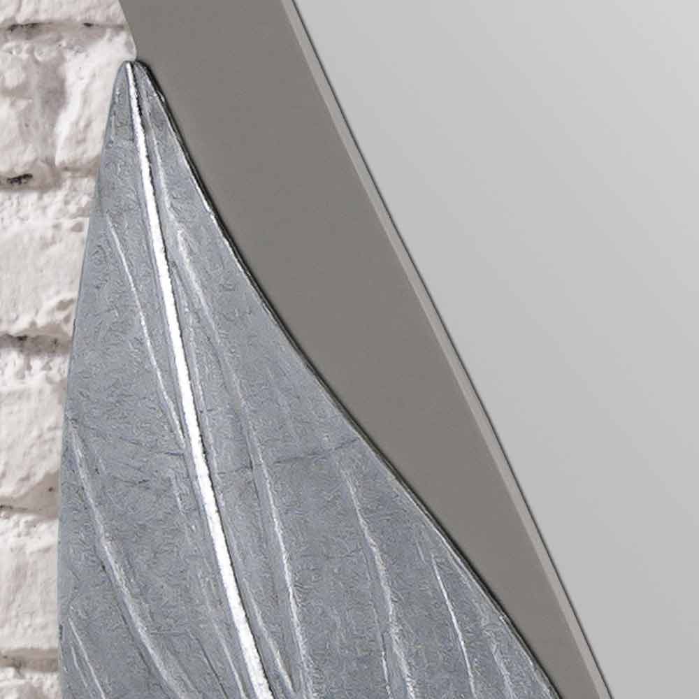 Estructura perfilada lacada color gris ceniciento, decorada a mano con matérico y hoja plata, colocación horizontal / vertical, retoque extra lúcido.