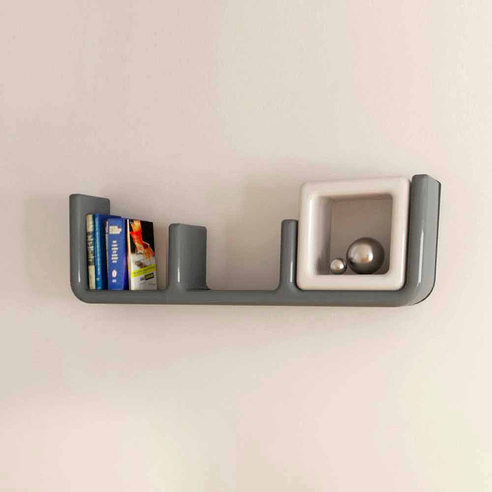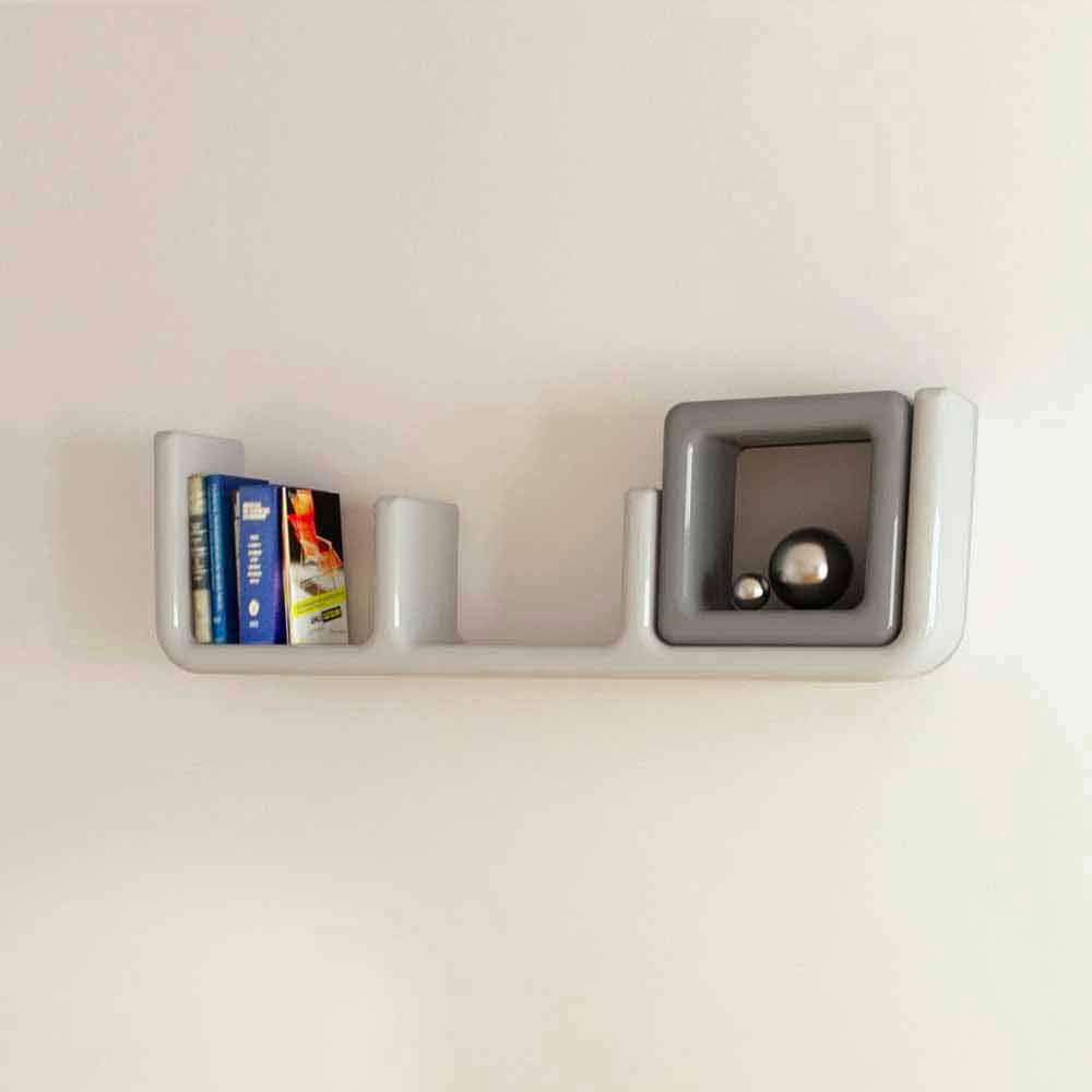 La estantería Atlante consta de tres útiles compartimentos con el añadido de un accesorio polivalente que, si es necesario, multiplica el espacio para guardar libros y objetos.
