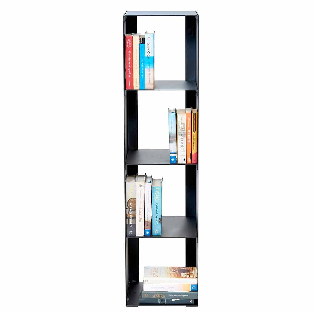 Librería de piso de estilo moderno con estantes de hierro pintado en negro, rojo, blanco o gris; hecho en Italia.