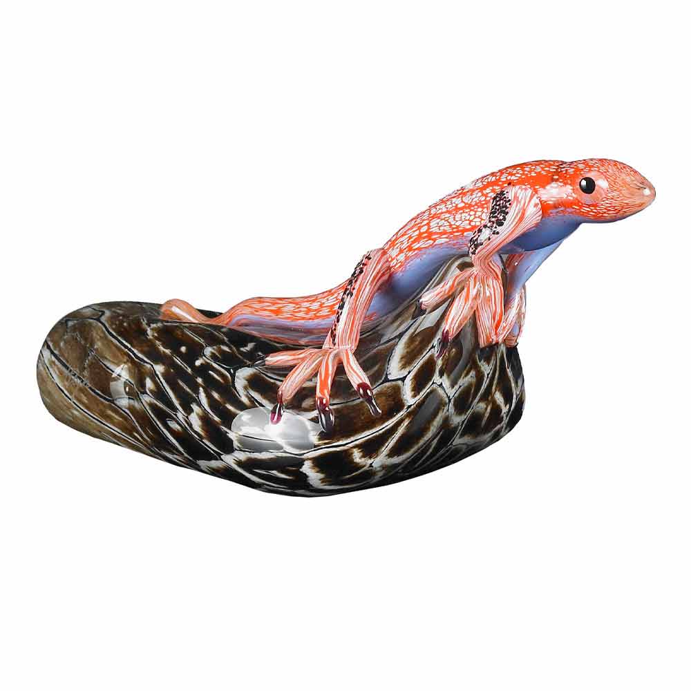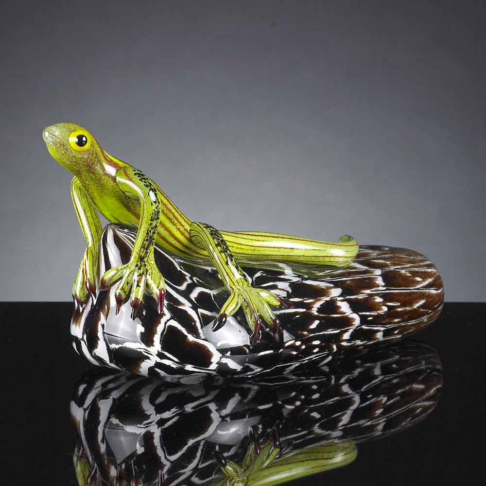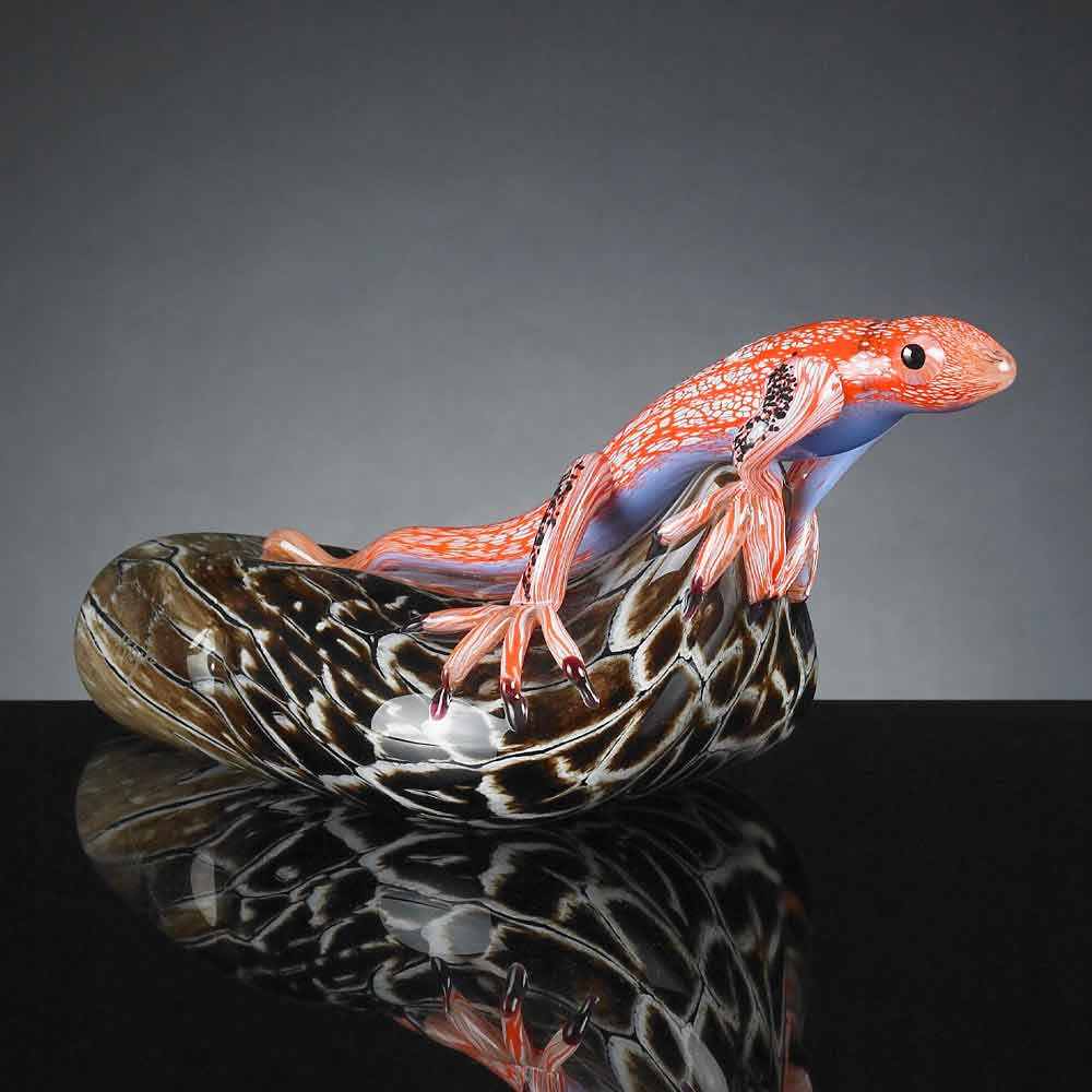 Adorno en forma de lagarto sobre piedra en vidrio coloreado Made in Italy, fina.