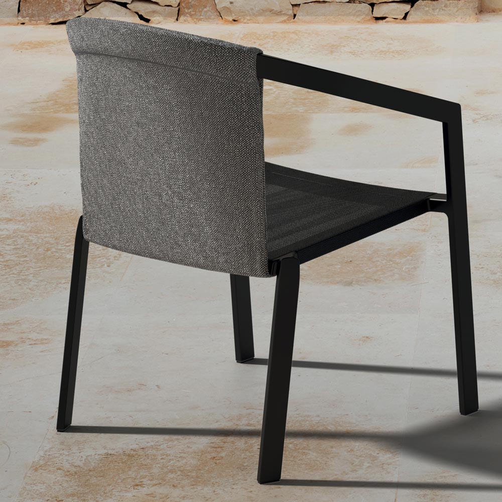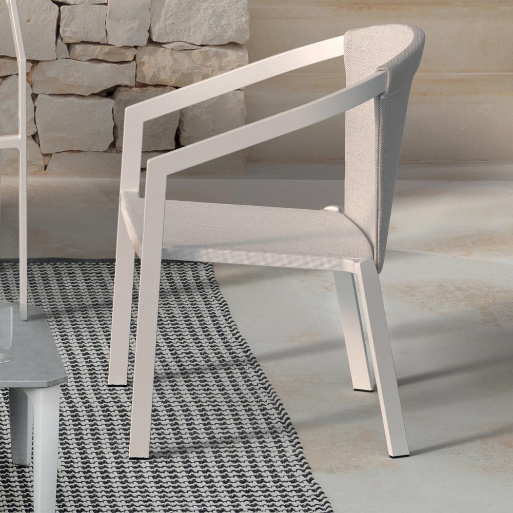 Silla de jardín de aluminio con asiento de textilene y respaldo tapizado Made in Italy