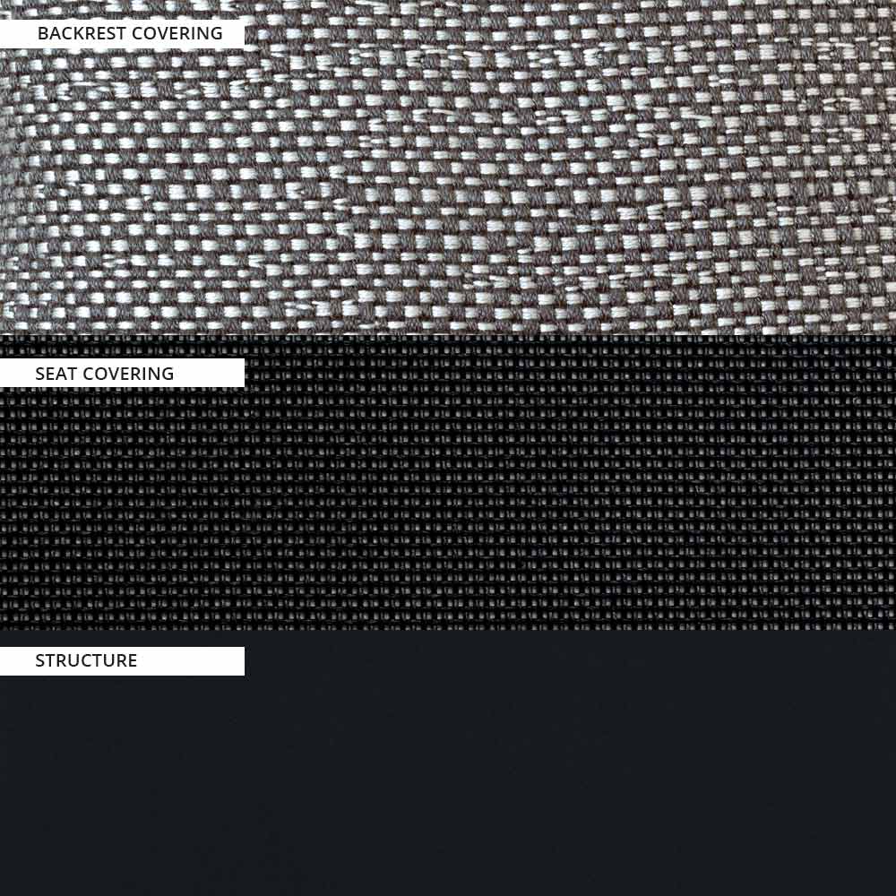 - Aluminio gunmetal, textilene negro y tejido brown melange.