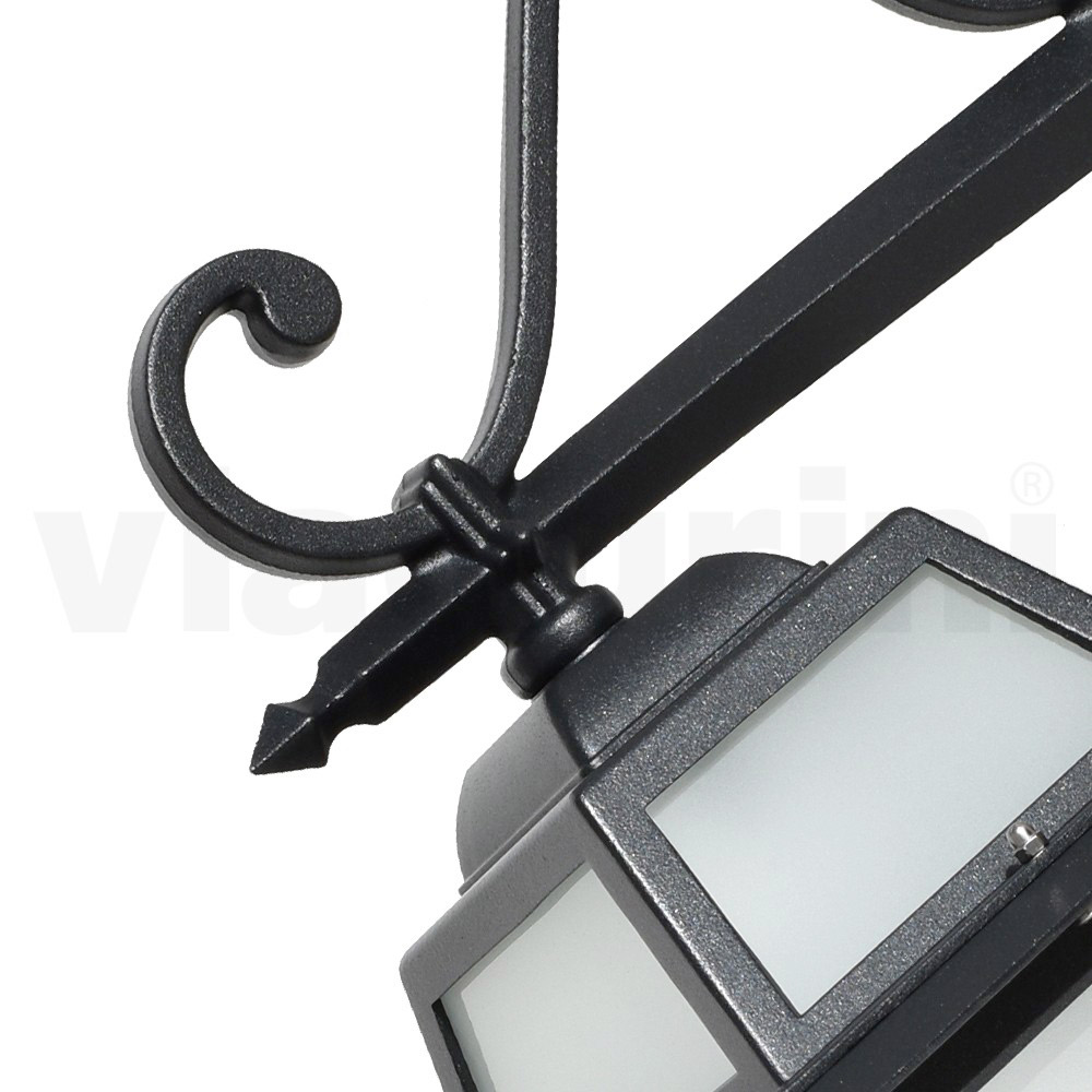 Lámpara de jardín realizada con estructura de aluminio inyectado con acabado antracita y difusor de cristal arenado , íntegramente Made in Italy.