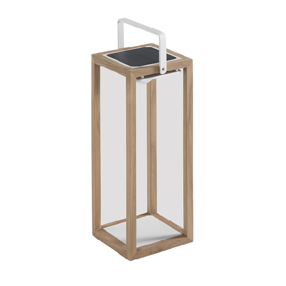 aluminio pintado o teca disponible con estructura blanca y tirador blanco o con estructura de teca y tirador blanco. La luz de la linterna está dada por