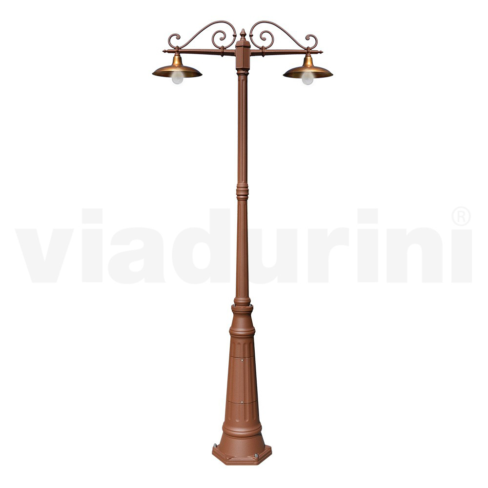Farola de exterior vintage 2 luces en aluminio y latón Made in Italy.