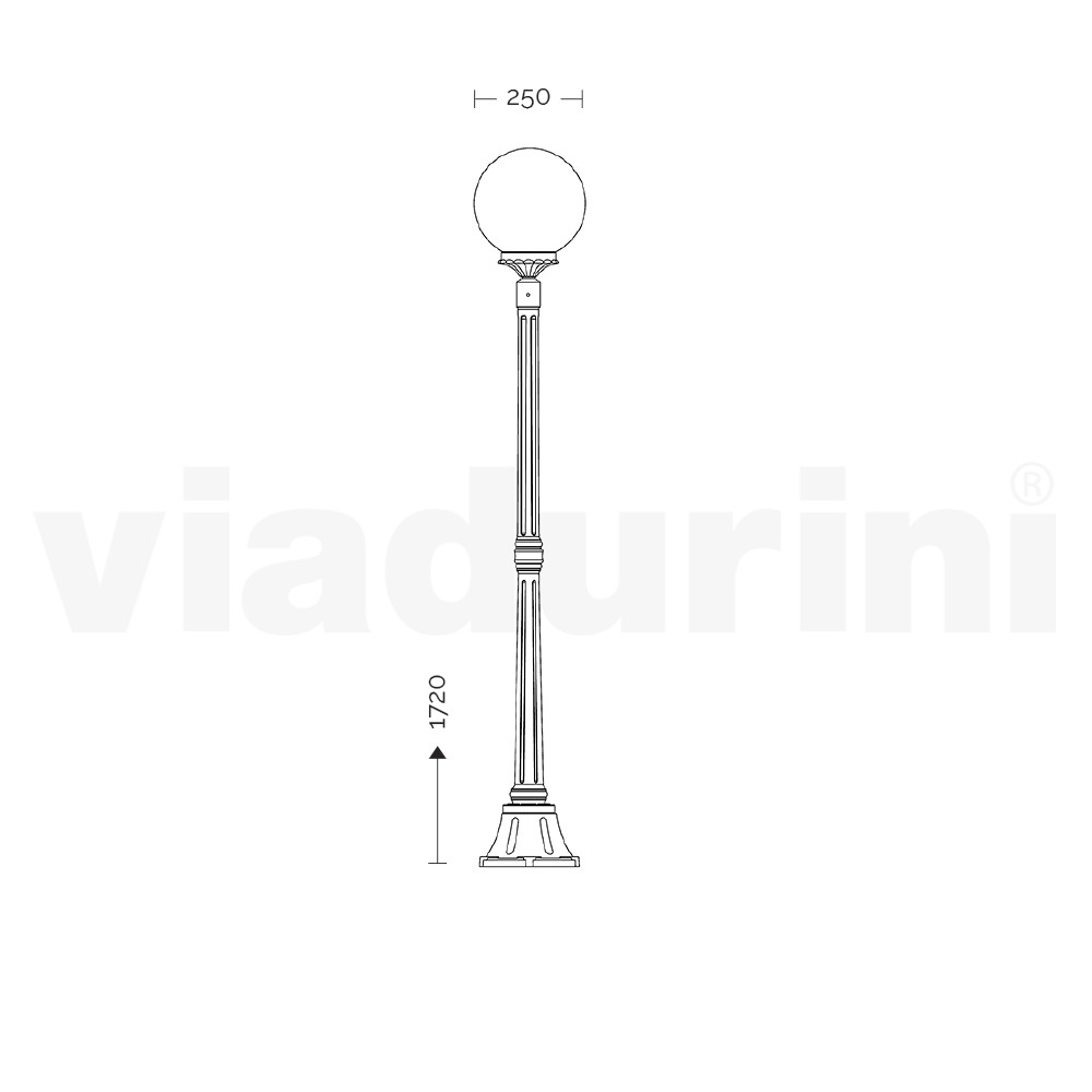 Lámpara de jardín realizada con estructura de aluminio inyectado acabado antracita y difusor de esfera acrílica opal , íntegramente Made in Italy.