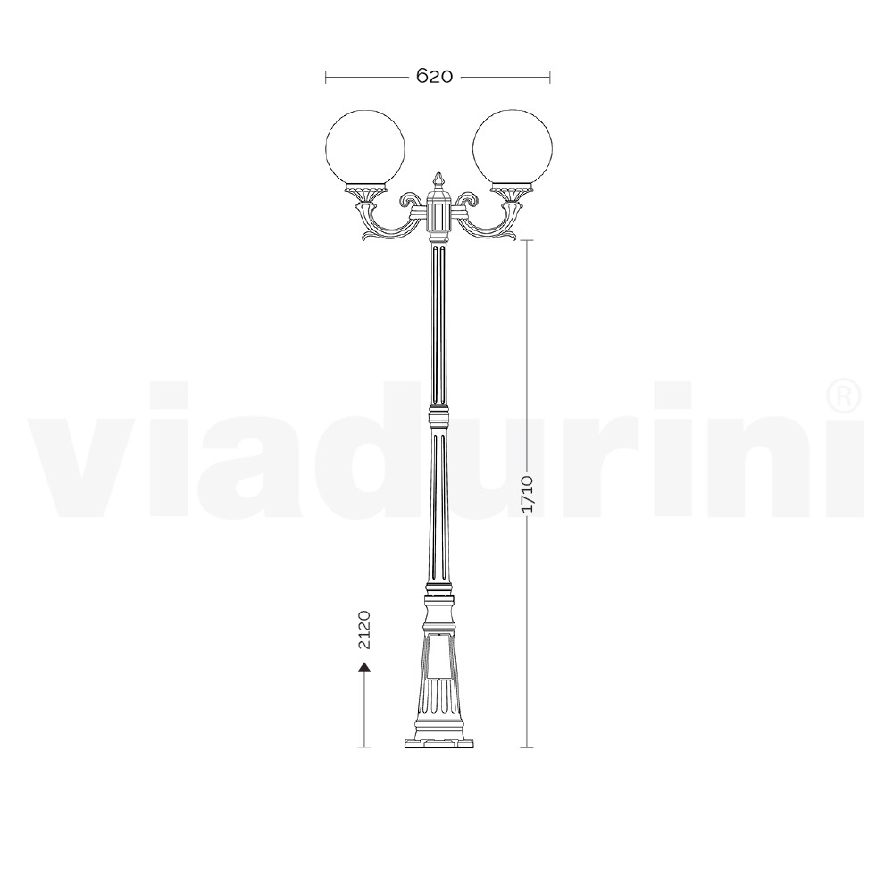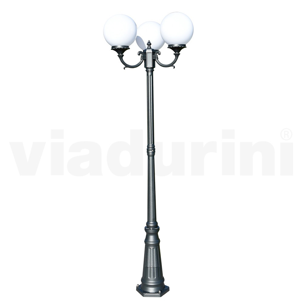 Farola de exterior en fundición de aluminio con 3 difusores acrílicos