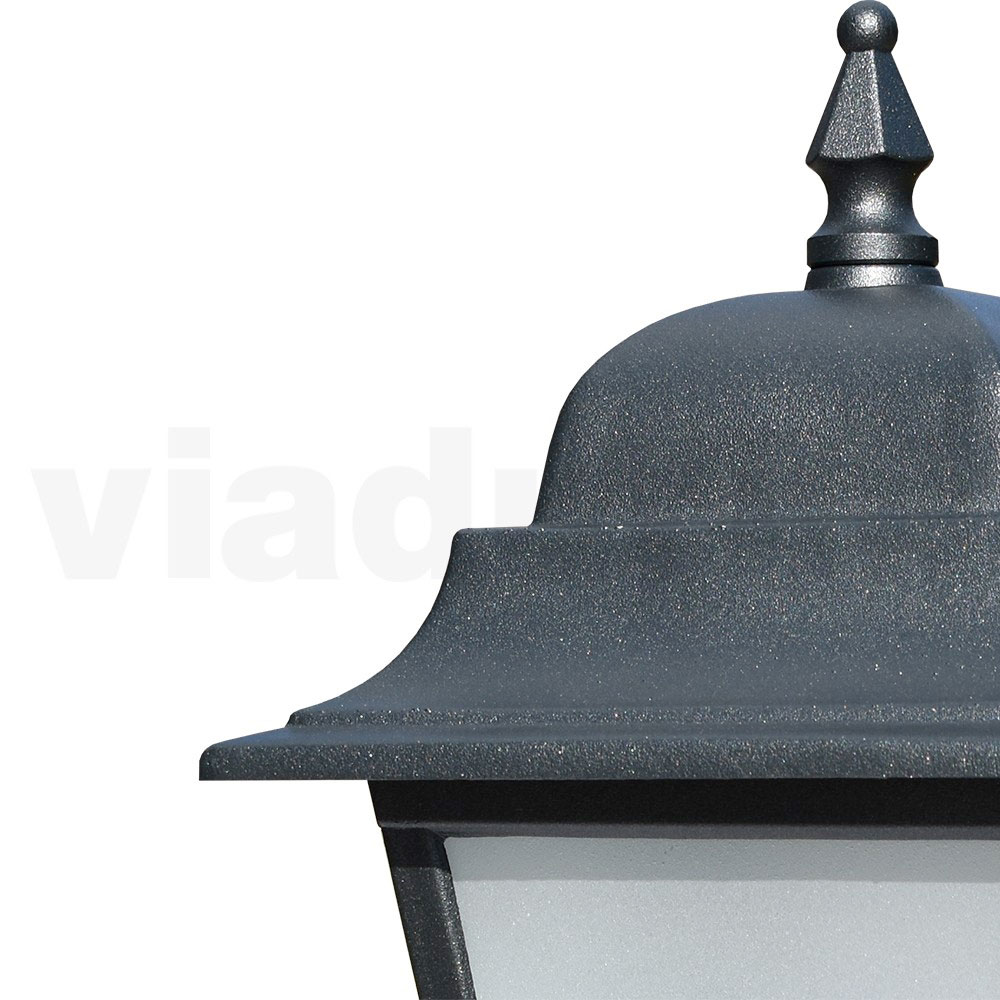 Lámpara de jardín realizada con estructura de aluminio inyectado con acabado antracita y difusor de cristal arenado , íntegramente Made in Italy.