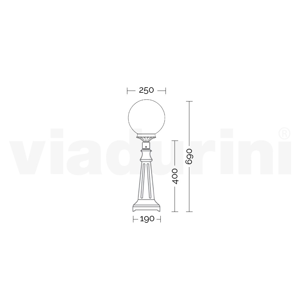 Lámpara de jardín realizada con estructura de aluminio inyectado y difusor de esfera acrílica opal , íntegramente Made in Italy.