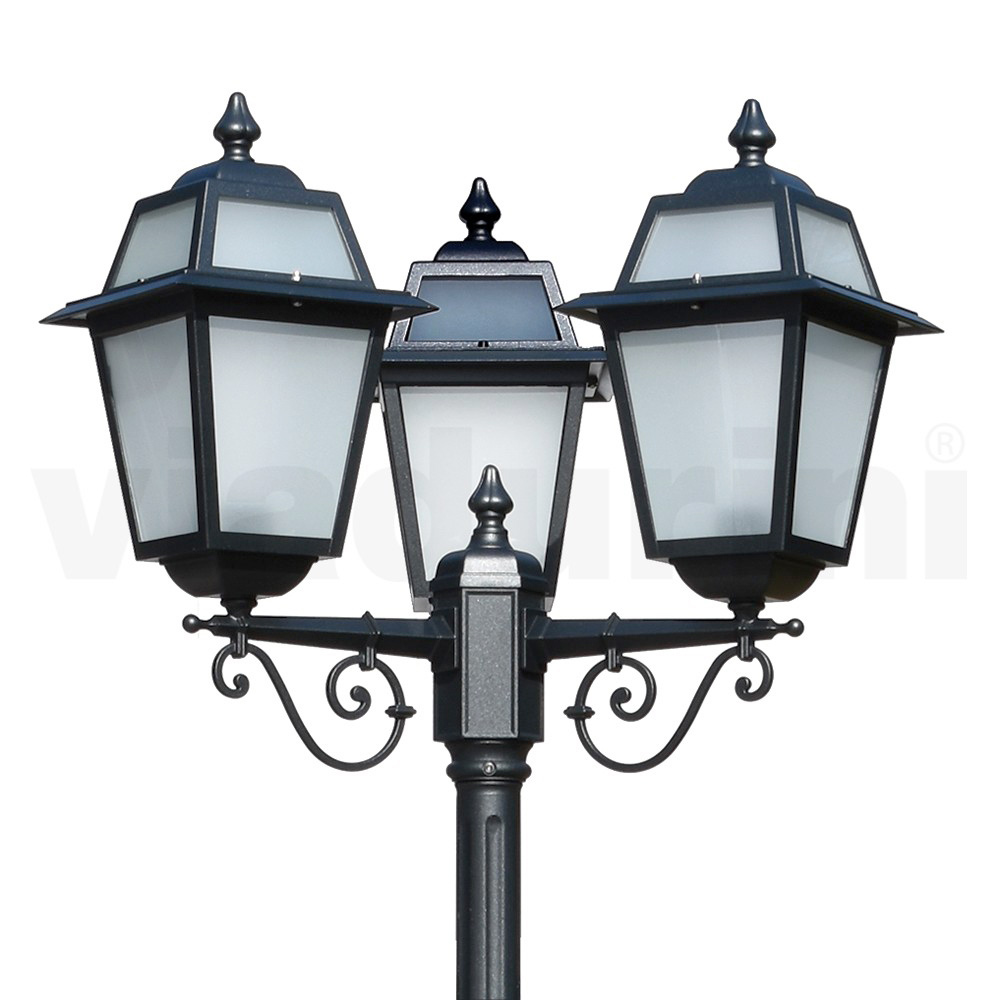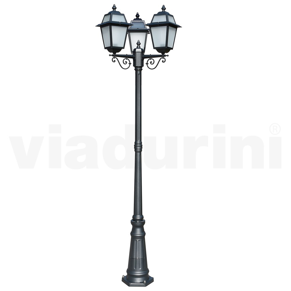 Esta farola de aluminio fundido con acabado antracita es una opción elegante para cualquier entorno al aire libre. Con un diseño clásico y elegante, presenta detalles artesanales que evocan una atmósfera de tiempos pasados. Los 3 faroles, cuidados hasta el más mínimo detalle, difunden una luz cálida y suave, ideal para crear un camino luminoso en tu jardín o para delimitar con clase una zona de relax al aire libre. Solidez y belleza se unen en esta farola, diseñada para perdurar en el tiempo y resistir los agentes atmosféricos. Elegante y funcional , será la firma luminosa de tu espacio exterior.