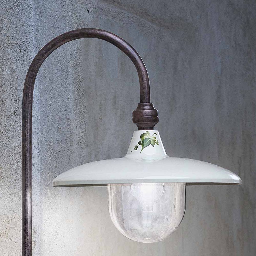 Esta farola de jardín está realizada íntegramente en aluminio decorado con hiedra pintada a mano para un estilo clásico y armonioso entre formas y colores.