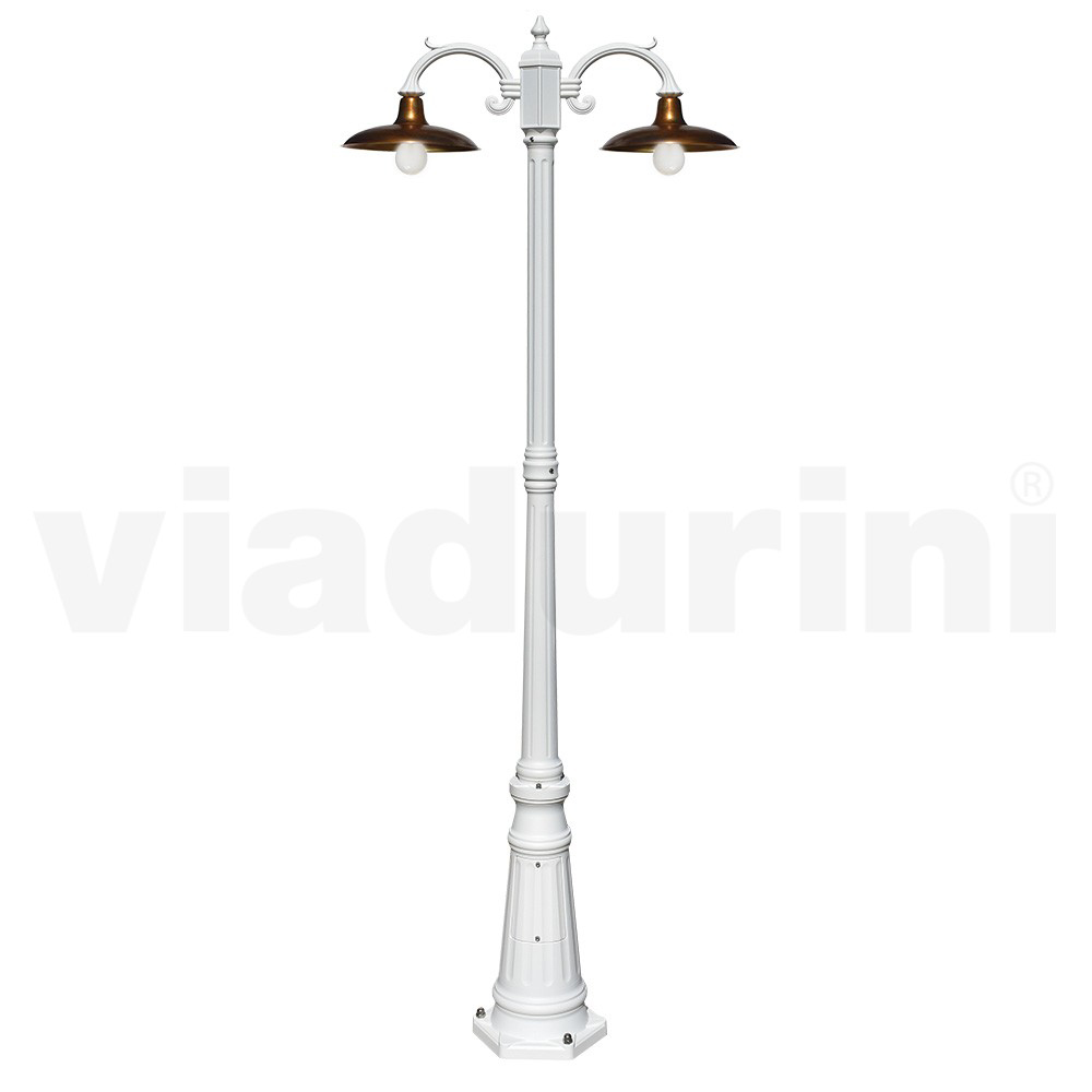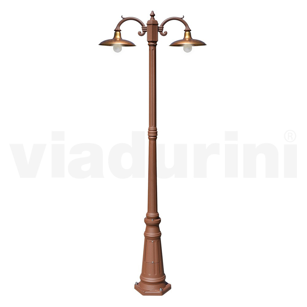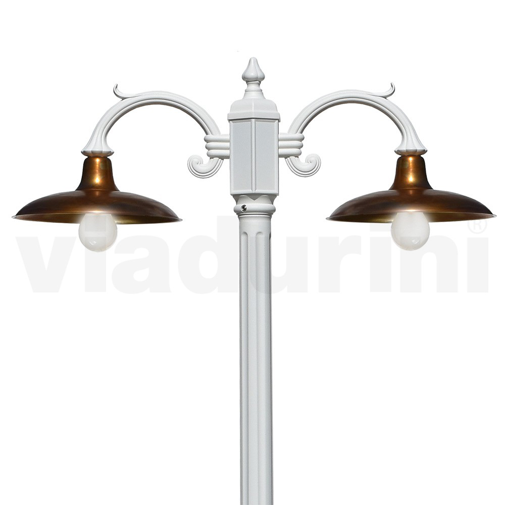 Farola de aluminio de 2 luces estilo vintage con difusor de latón Made in Italy.
