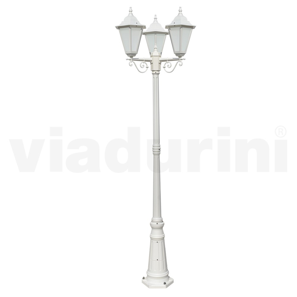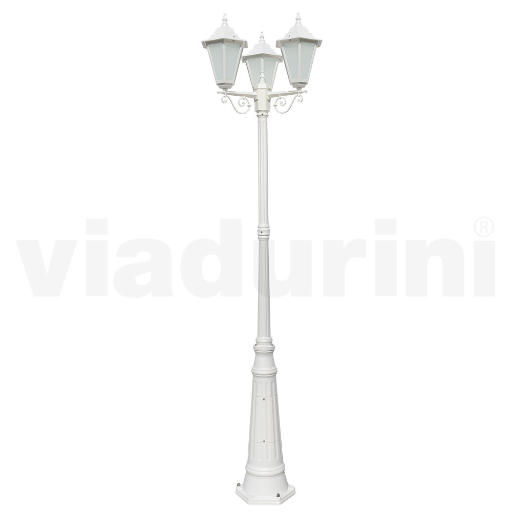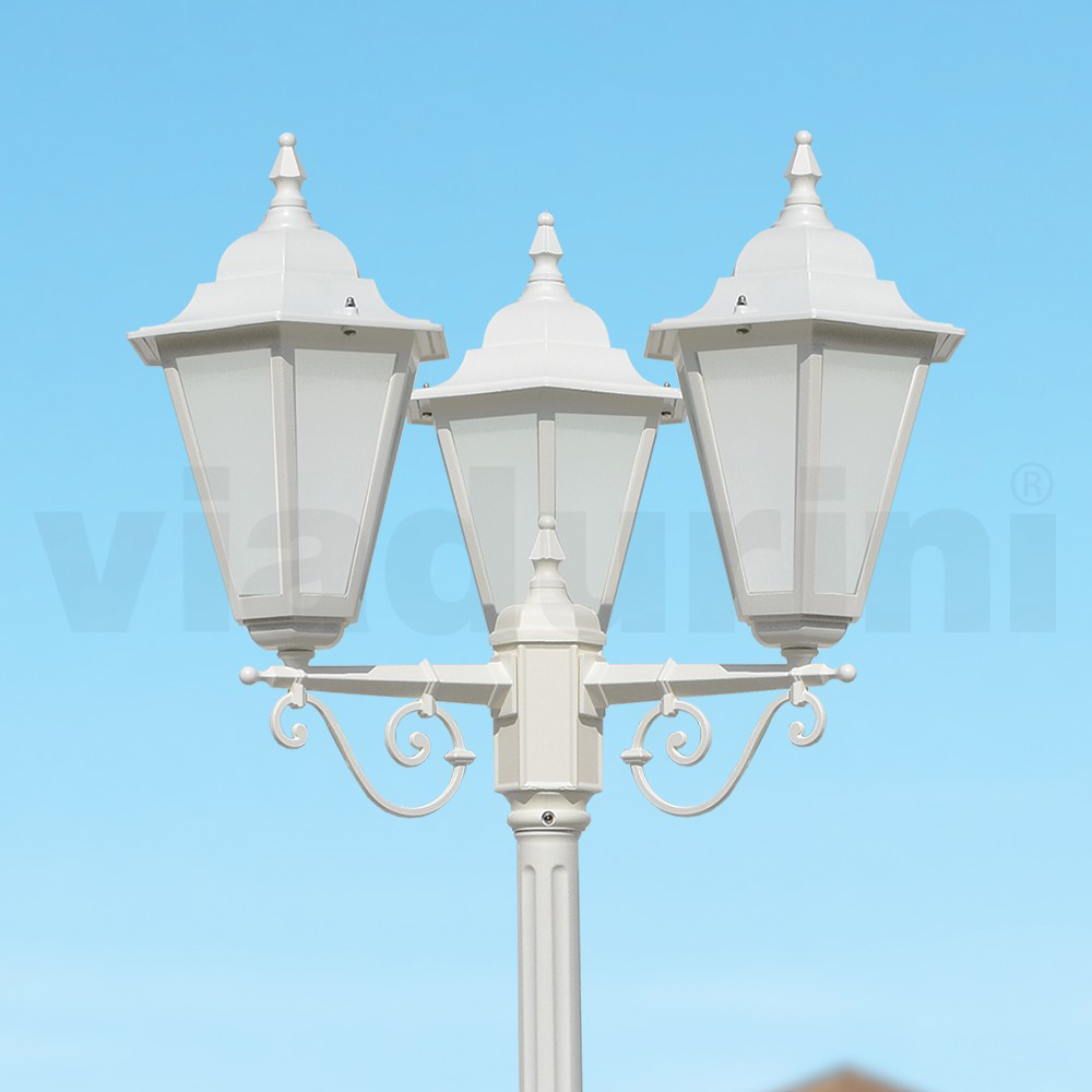 Farola de 3 luces de aluminio con difusor de cristal Made in Italy, estilo vintage.