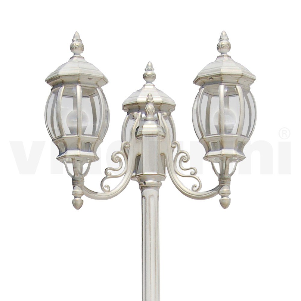 Lámpara de jardín vintage de 3 luces en aluminio y policarbonato Made in Italy.