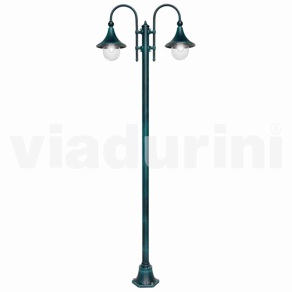 Farola exterior de dos luces en aluminio fundido a presión, fabricado en Italia, Anusca