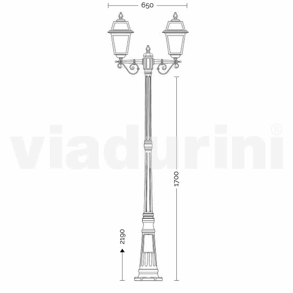 Kristel es una farola de exterior de dos luces hecha a mano en Italia con material de alta calidad: estructura de aluminio inyectado y difusor de cristal disponible: transparente o arenado.