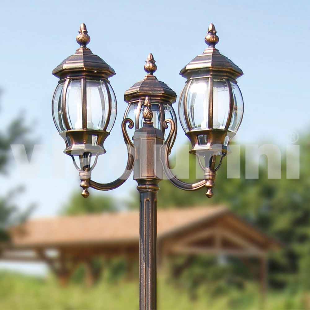 Anika es una farola de exterior de tres luces hecha a mano en Italia con material de alta calidad: estructura de aluminio inyectado y difusor de policarbonato transparente (garantiza una difusión de luz óptima y siempre homogénea).