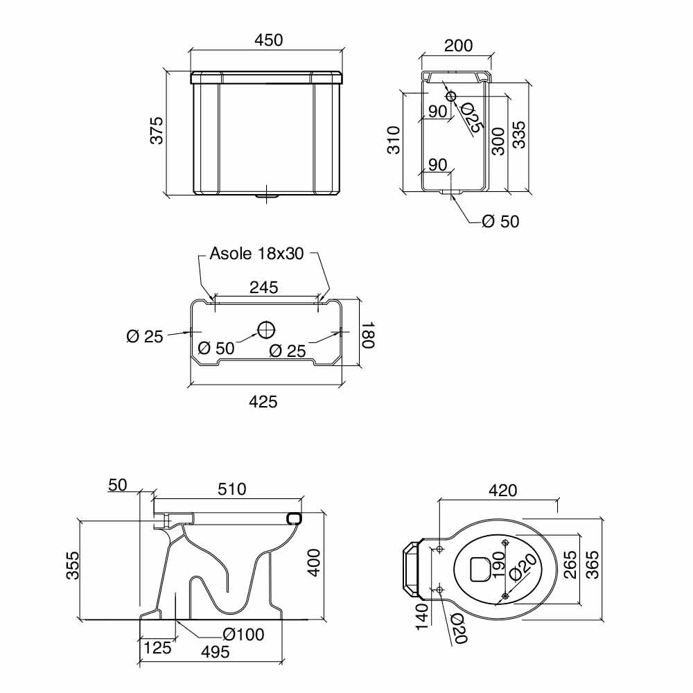Soportes ornamentales, batería baja para caja y tubo de latón externo no incluido en el precio. También disponible en versión de cerámica negra y con otros tipos de asiento. Para información y / o cotizaciones contáctenos usando el formulario "