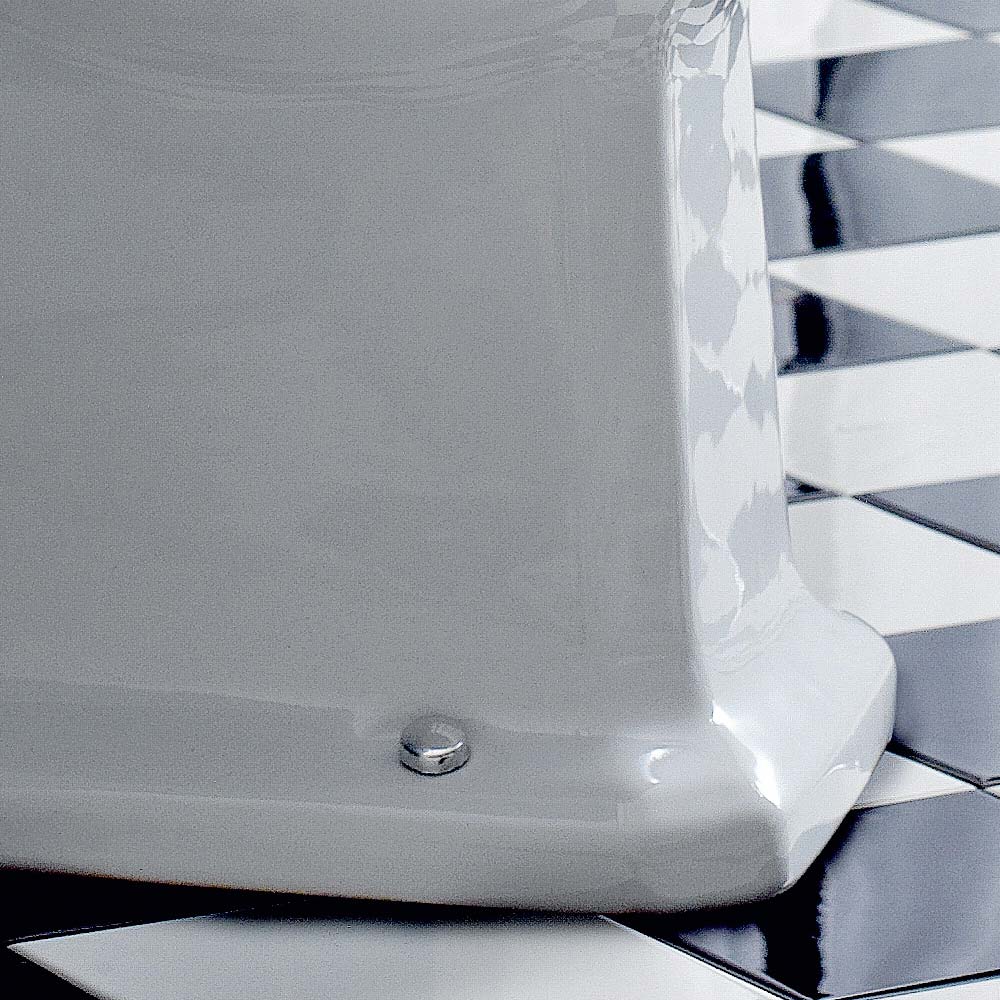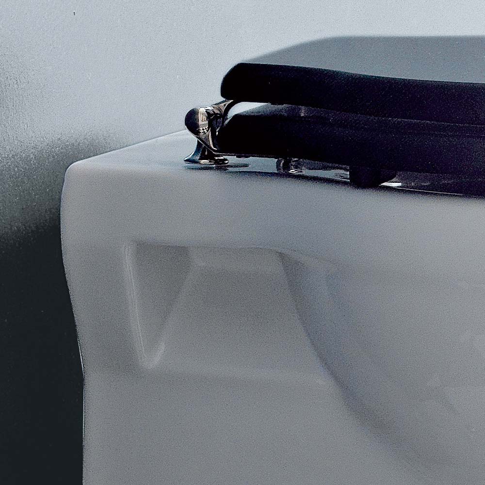 Este innovador back "Inglés" para florero pared con descarga de pared es hecha a mano en Italia en blanco de cerámica, con un asiento de negro mate y bisagras de níquel.