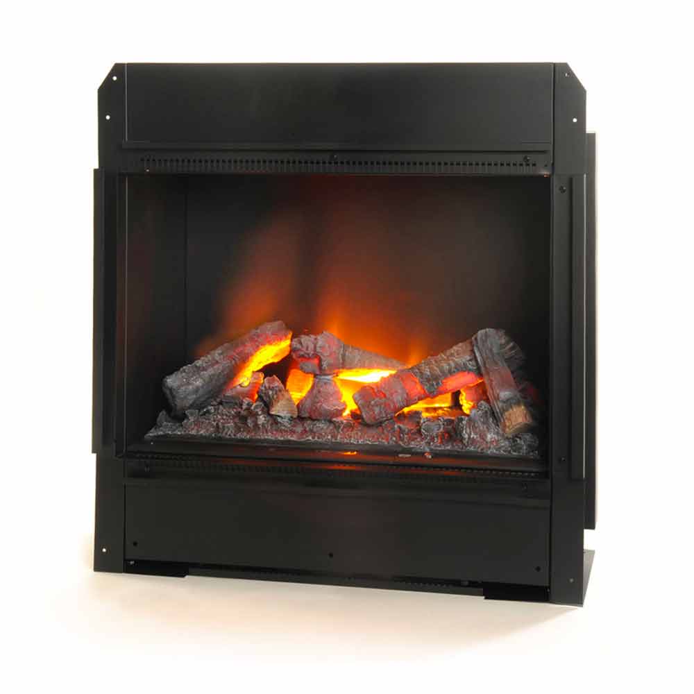 Hogar eléctrico para colocar en el suelo o empotrado, acabado interior negro o ladrillo.