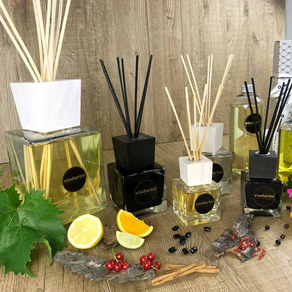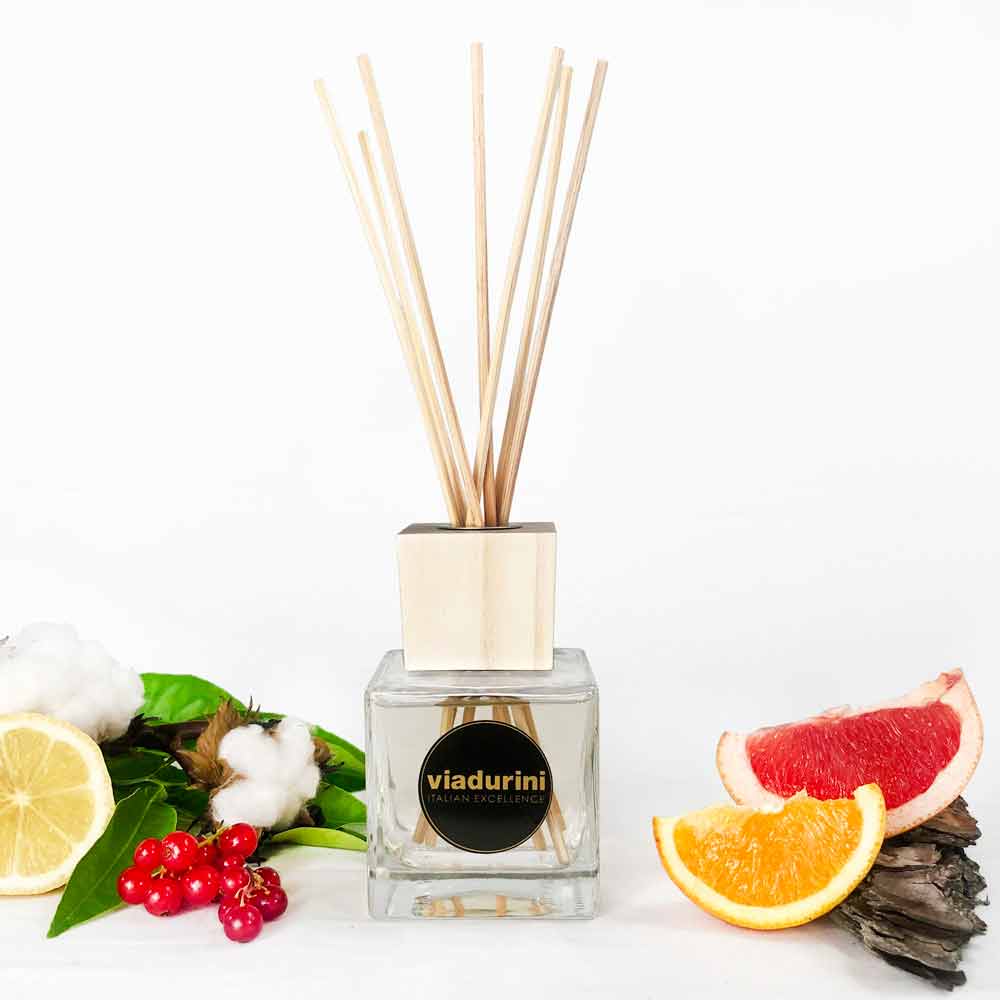 Ambientador con fragancia afrutada de algodón y cáñamo con varillas - Esencia Made in Italy.