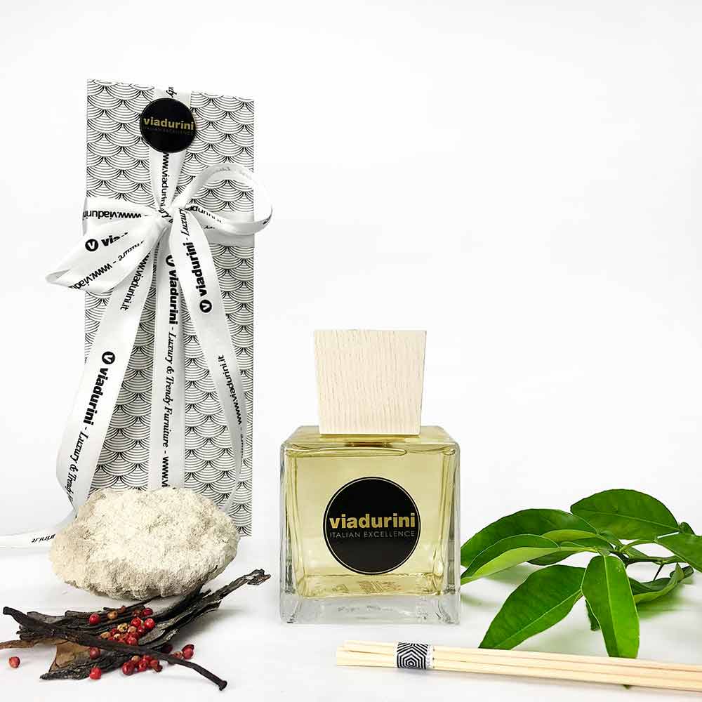 Fragancia hogareña oriental y ámbar con varillas - Esencia Made in Italy.