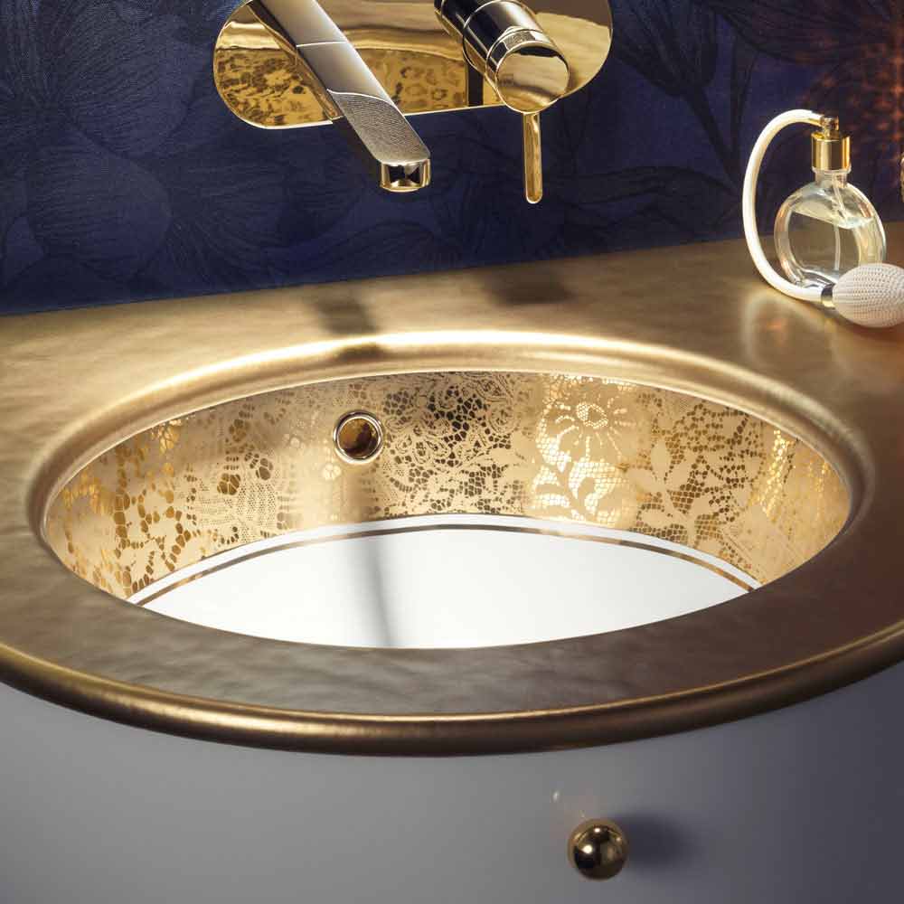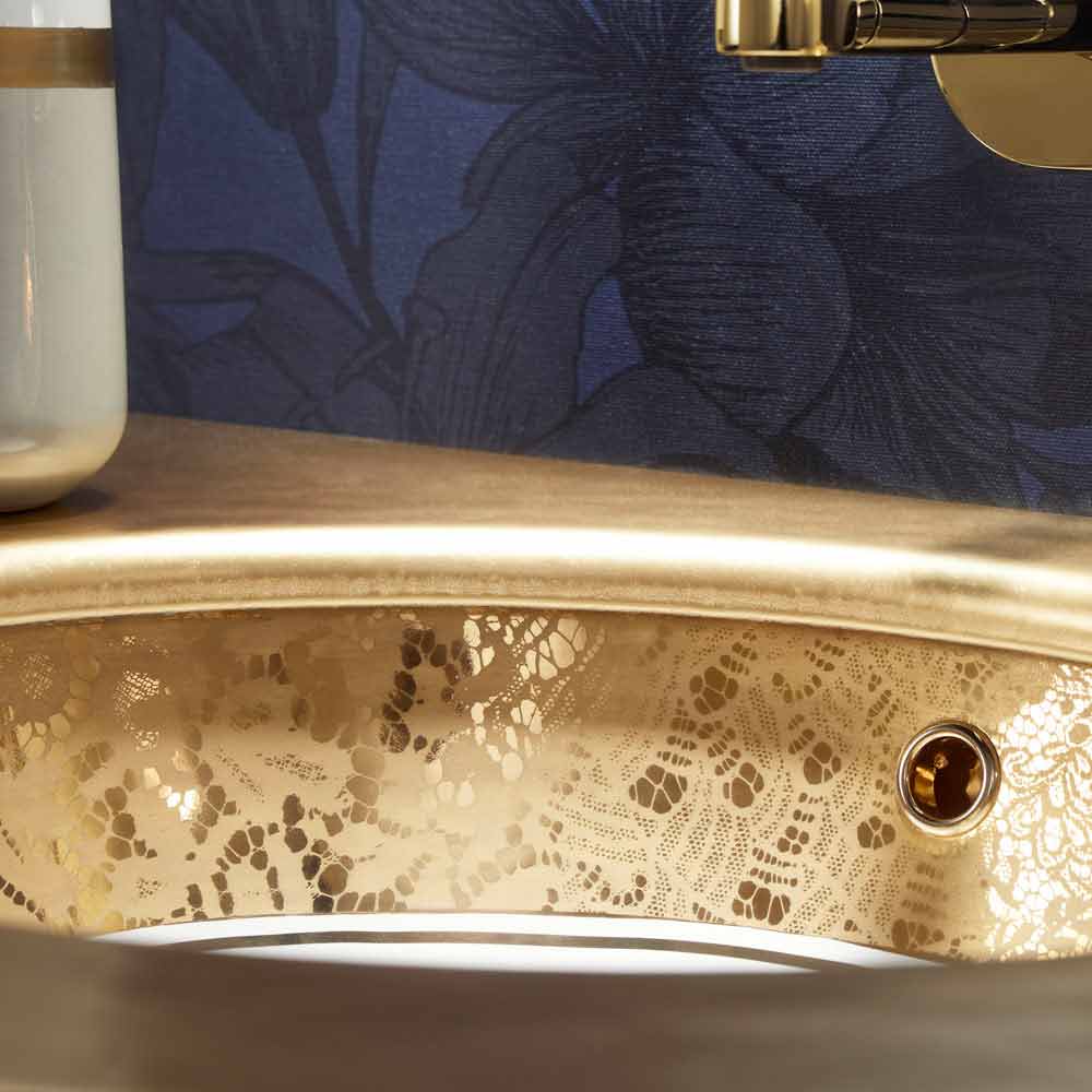 Fregadero bajo encimera en arcilla de fuego y oro hecho en Italia, Egeo