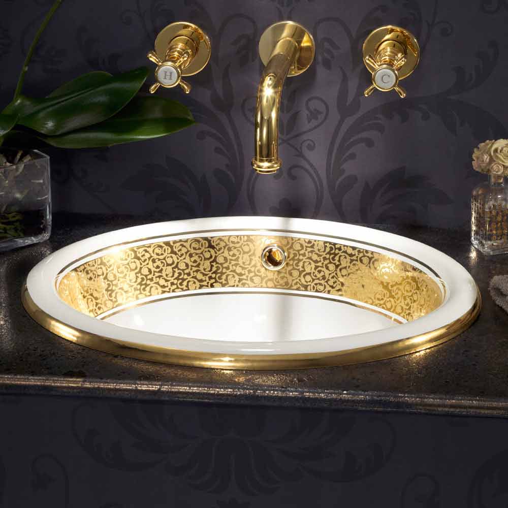 Fregadero circular empotrado en arcilla fuego y oro de 24k fabricado en Italia, Otis