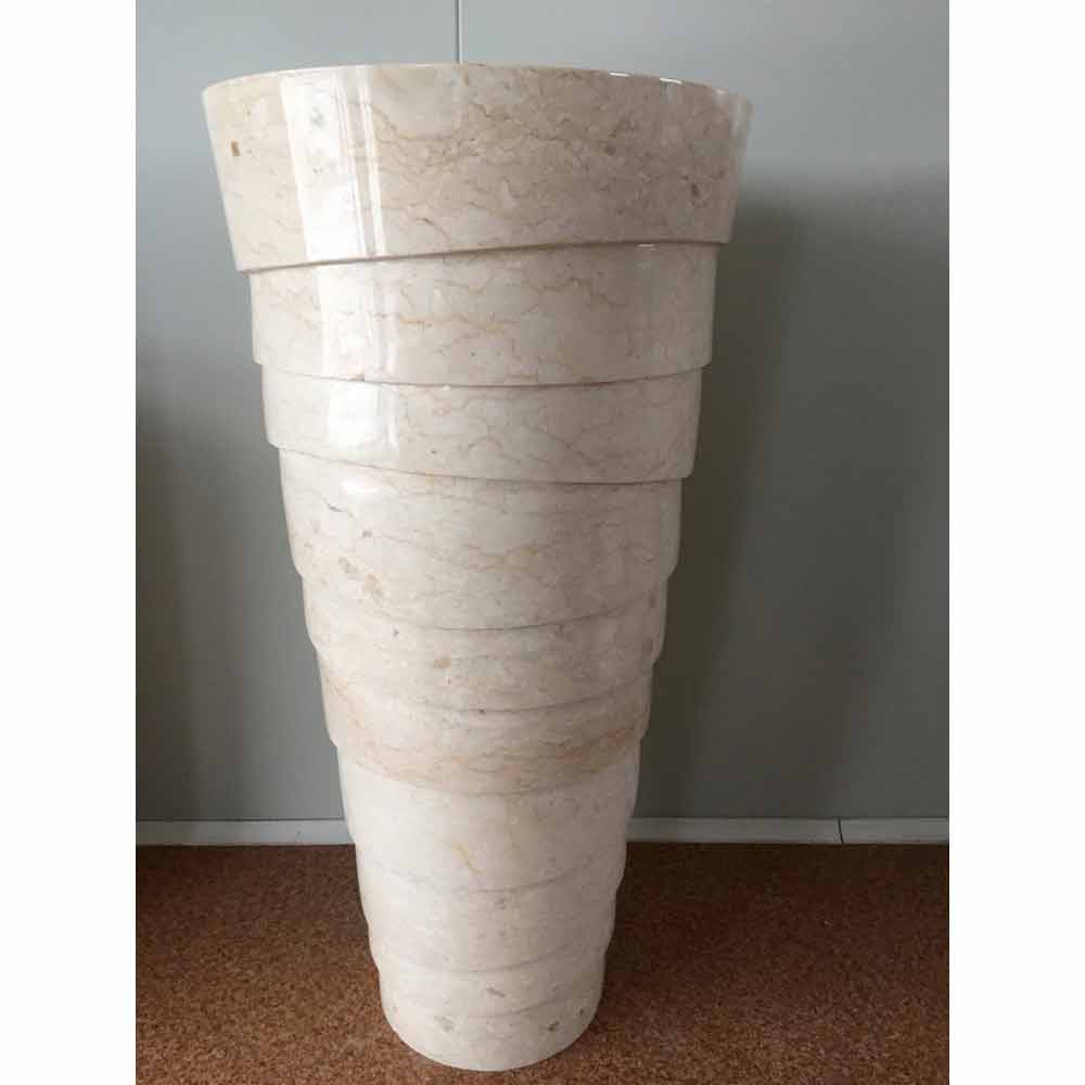 Lavabo cónico blanco de suelo en piedra natural Brent, pieza única.