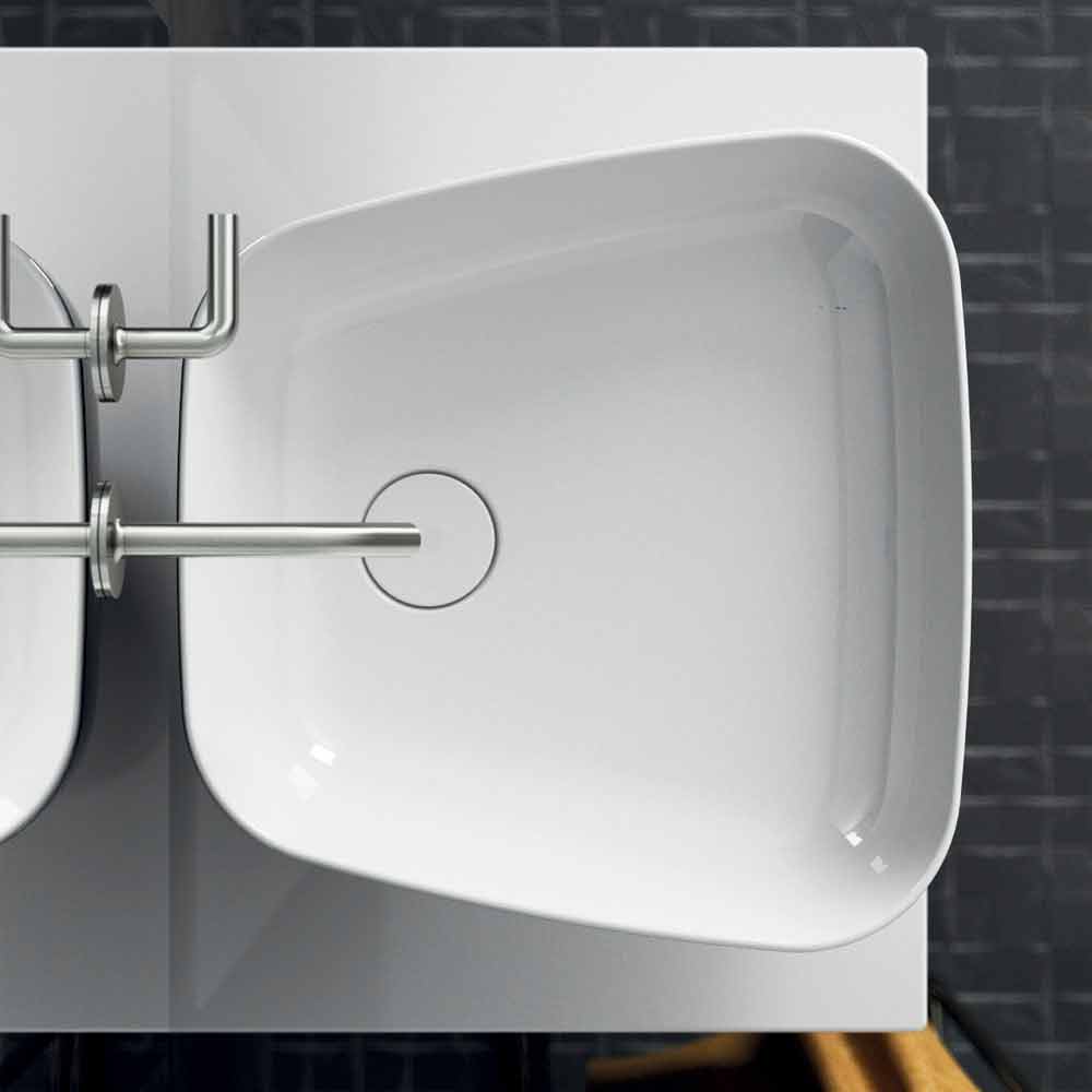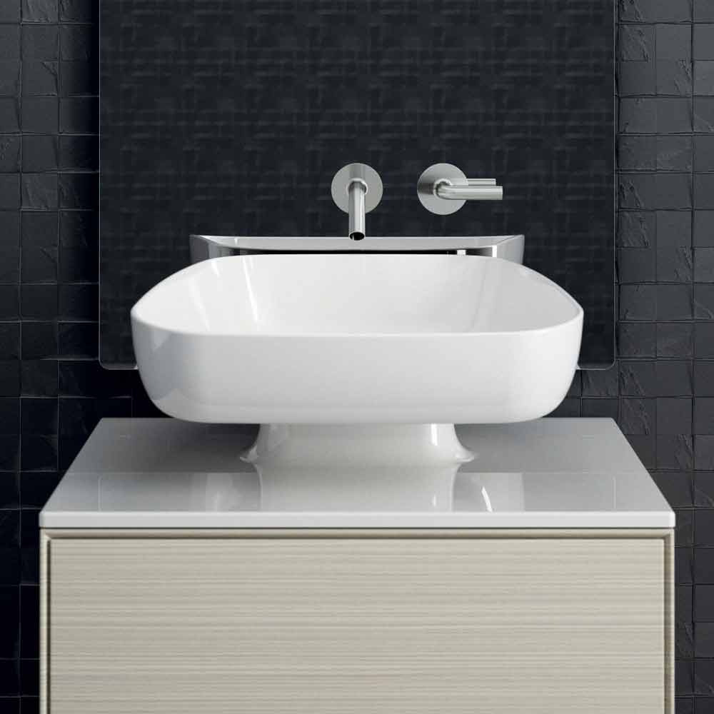 Reale es un maravilloso lavamanos de encimera hecho a mano en Italia en cerámica con un diseño y estilo innovadores, perfecto para integrarse naturalmente en su baño.