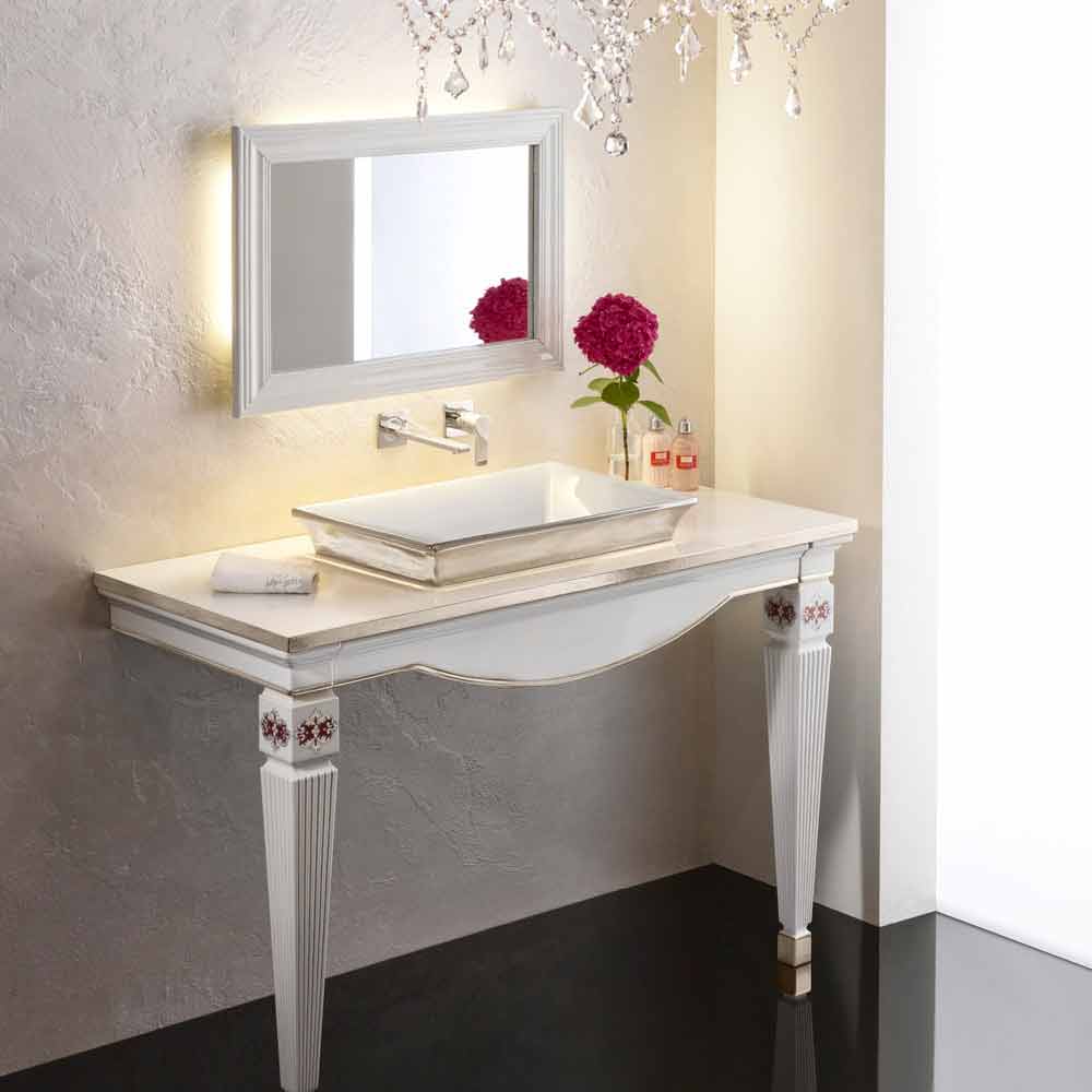 Fregadero de baño semirecesado hecho a mano en Italia en arcilla de fuego con blanco brillante en el interior y refinado en platino en el exterior.