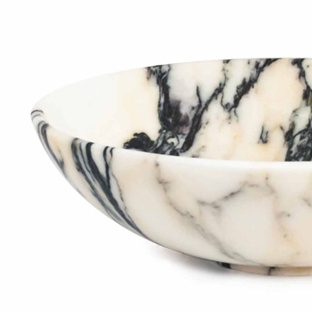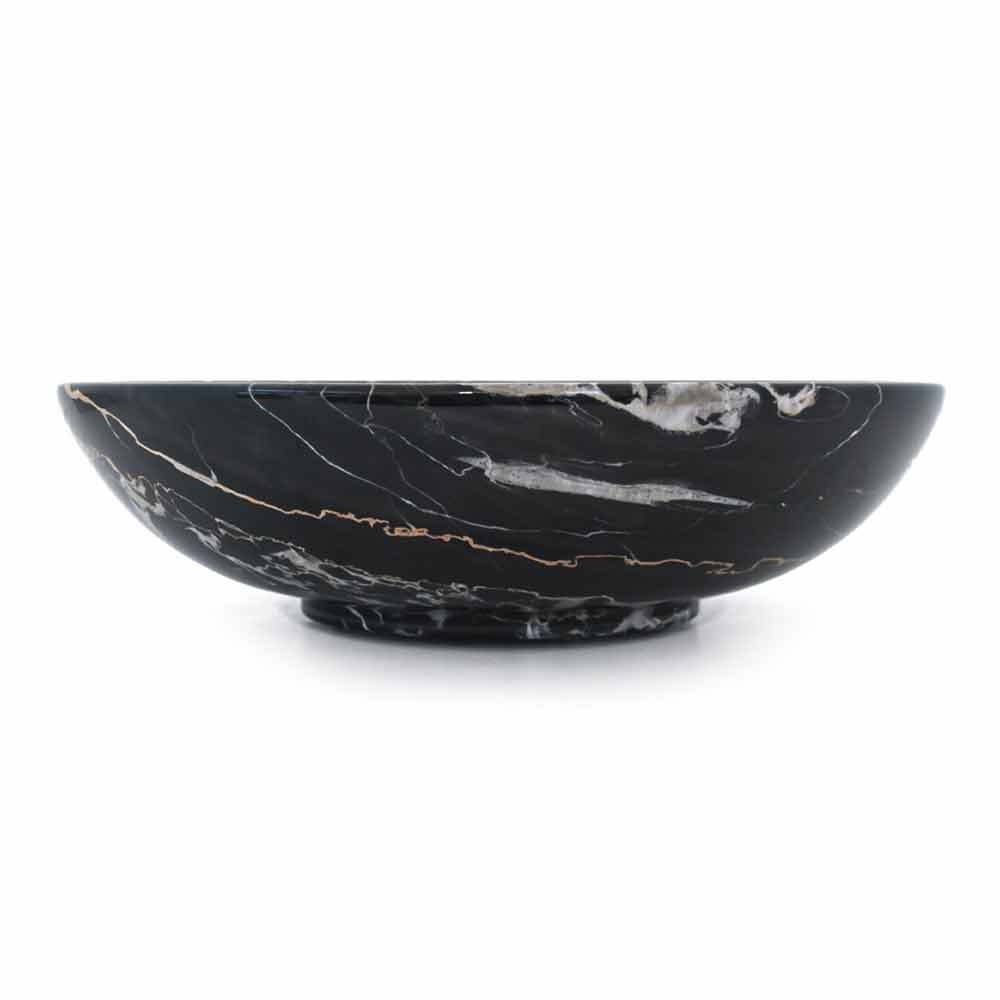 Frutero de diseño redondo en mármol Portoro, Paonazzo o Marquinia Made in Italy.