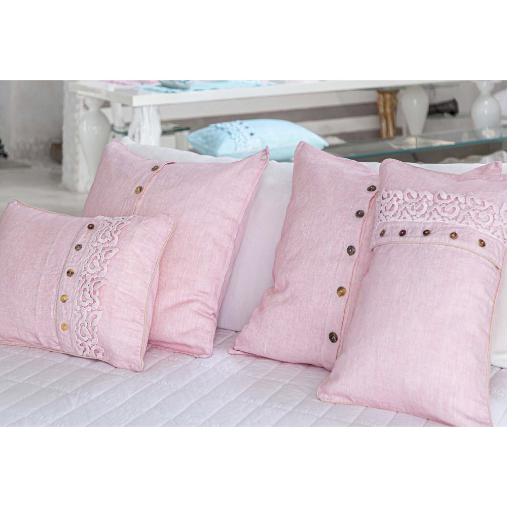 Funda de almohada de lino con cierre central con botones de nácar, 2 acabados de lujo made in Italy.
