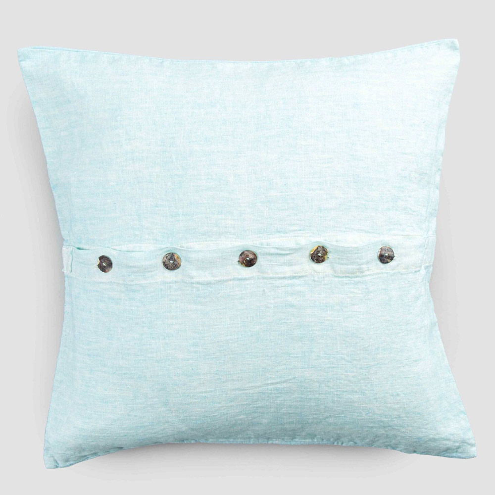 Funda de almohada cuadrada de lino de colores con botones Agoya en nácar - Mediterráneo