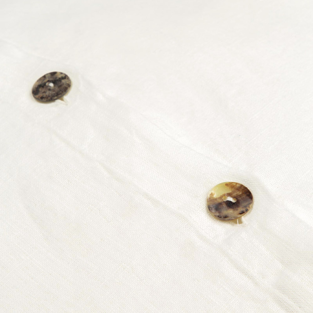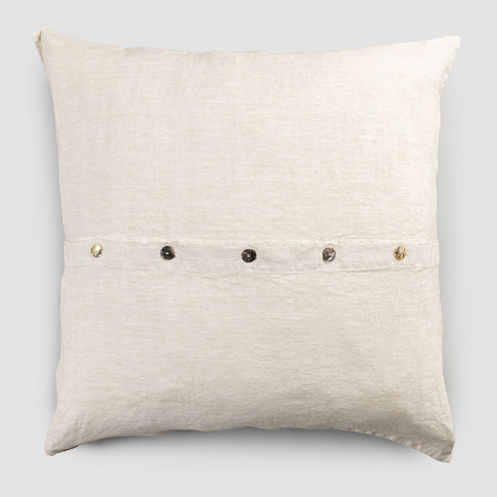 El valor de la tradición se une al estilo de vida moderno con esta funda de almohada de lino grueso con cierre central con botones Agoya en nácar, para cojines decorativos de diseño cuadrado.