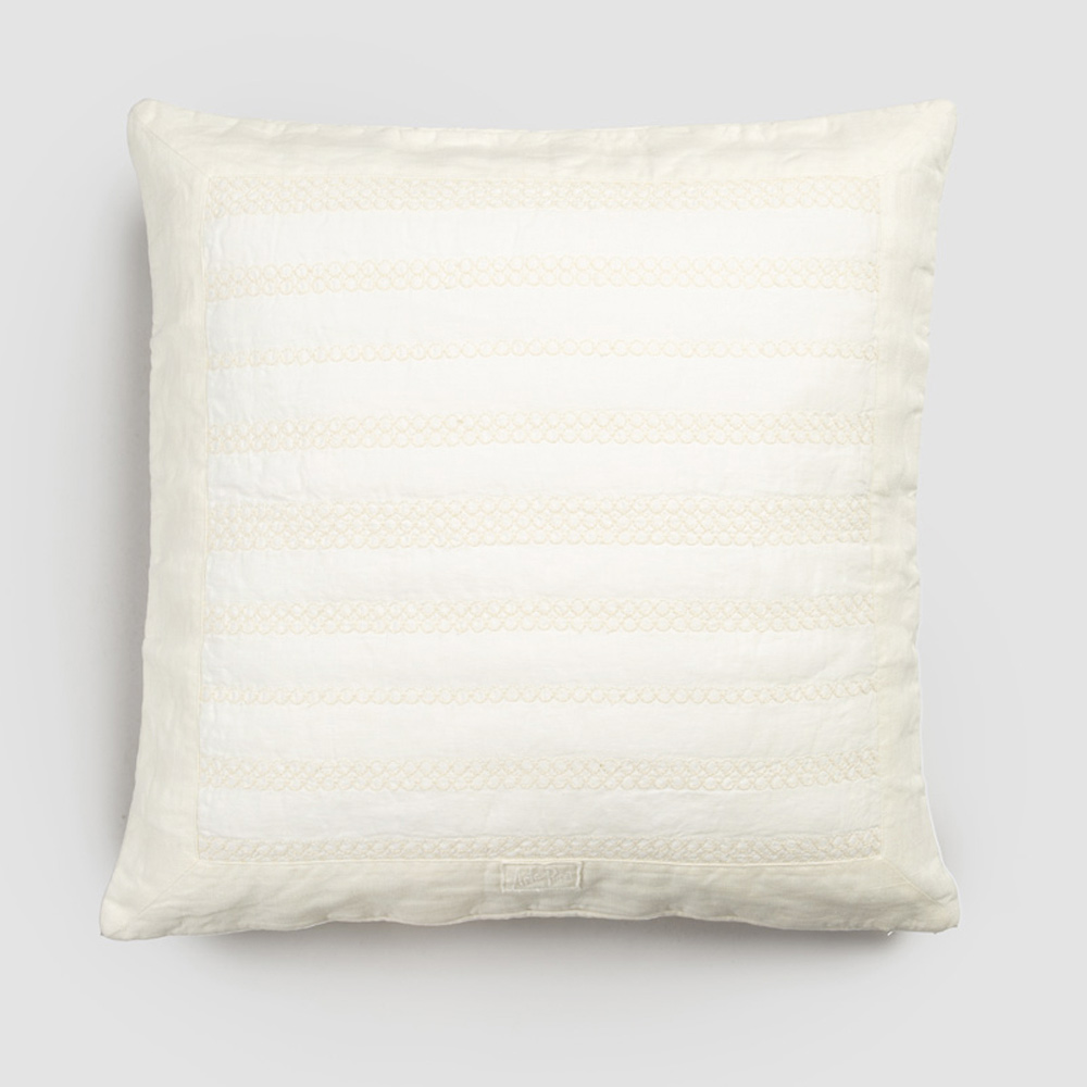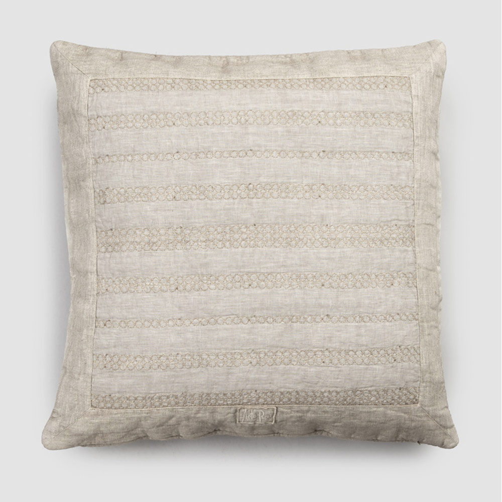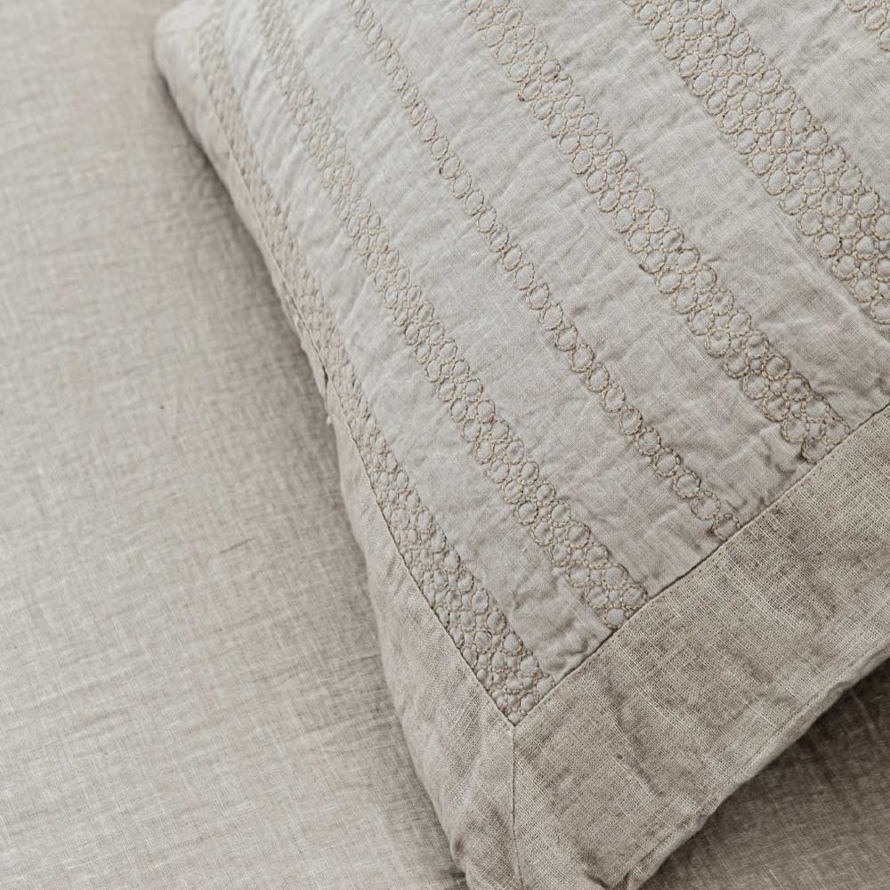 Funda de almohada cuadrada de lino con bordado en 2 acabados y fabricada en Italia.
