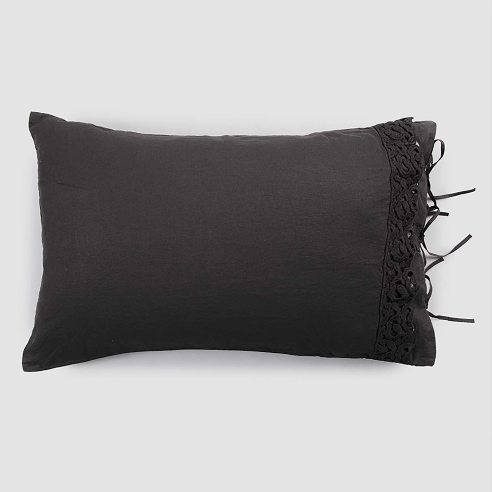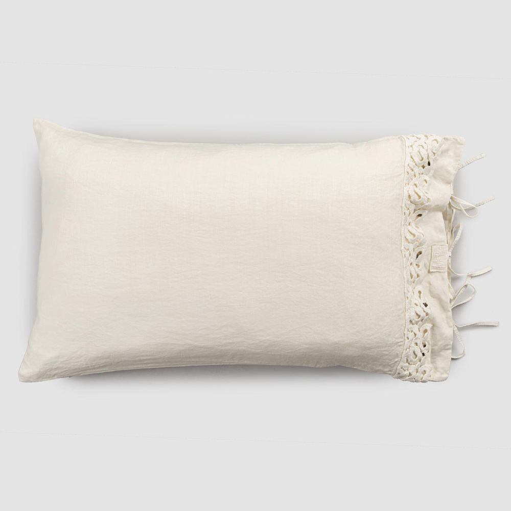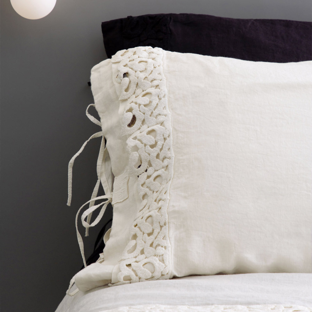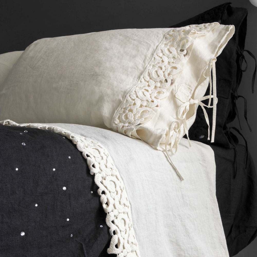 Funda de almohada de lino con encaje de Poema y cordones de mantequilla o negros Made in Italy - Masone