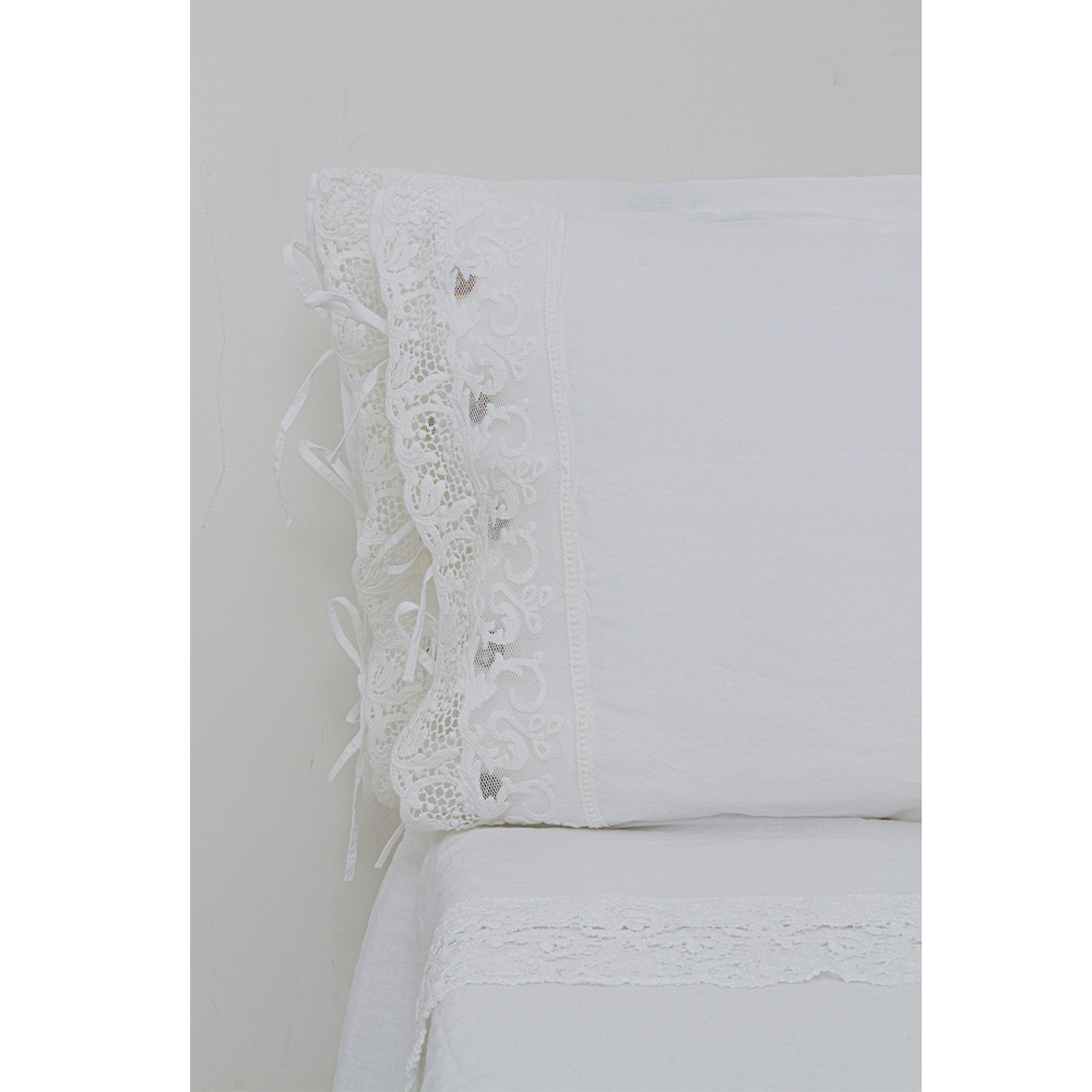 Funda de almohada de ropa de cama con encaje blanco, diseño de lujo Made in Italy - Kiss