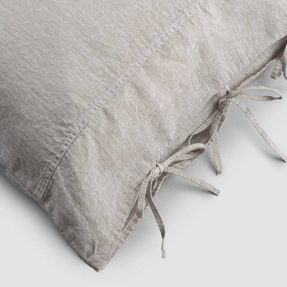 El valor de la tradición se une al estilo de vida moderno con esta funda de almohada de lino ligero con cierre de lazo para cojines decorativos de diseño cuadrado.