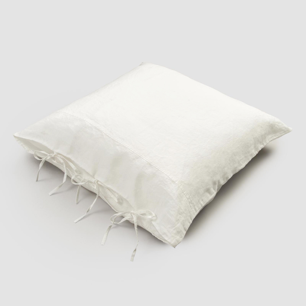 Funda de almohada cuadrada de lino con cierre de cordones, 2 acabados made in Italy.